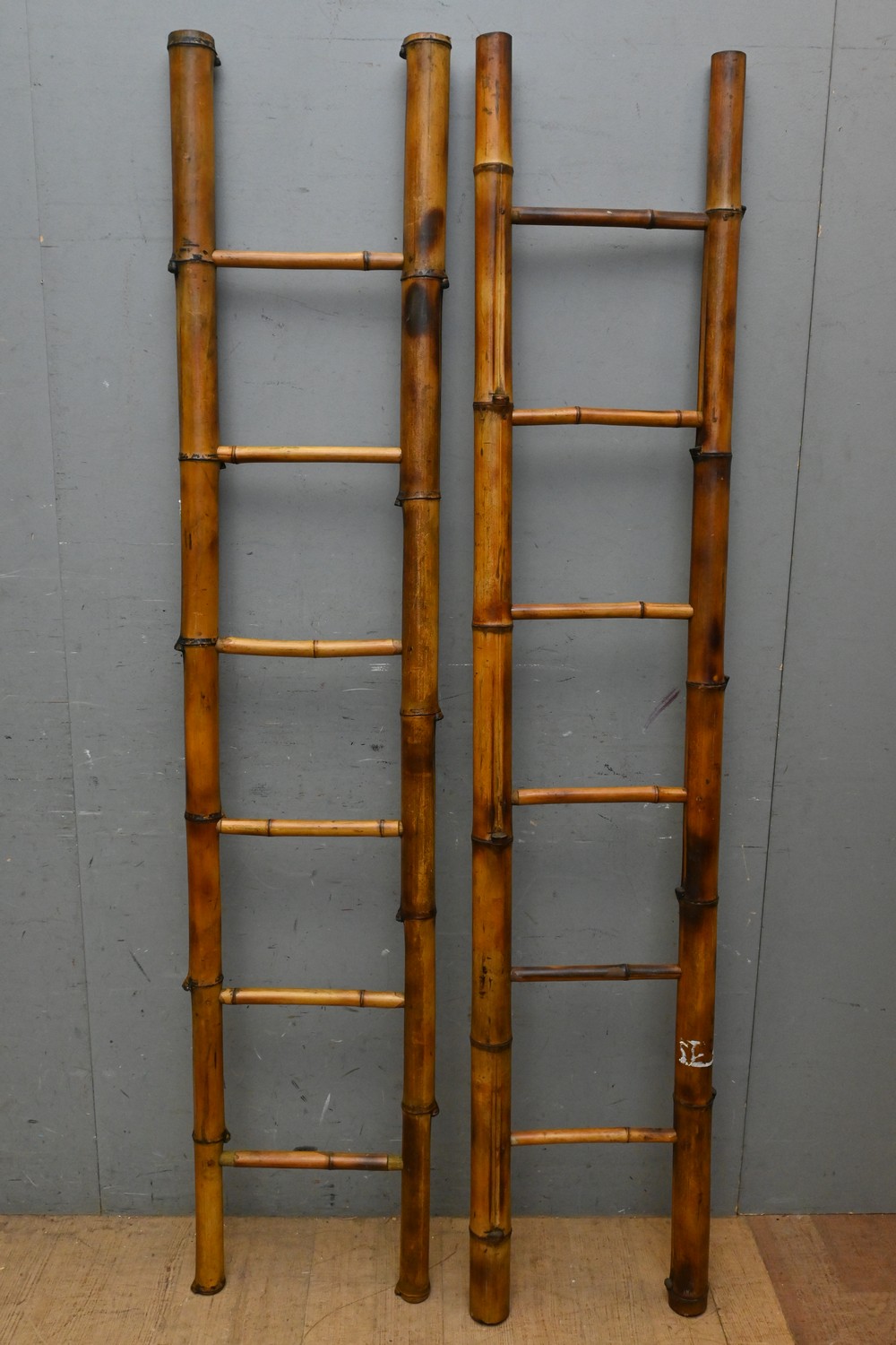 A PAIR OF CHINESE BAMBOO LADDERS (H186 X W38 CM) (LEONARD JOEL DELIVERY SIZE: LARGE)