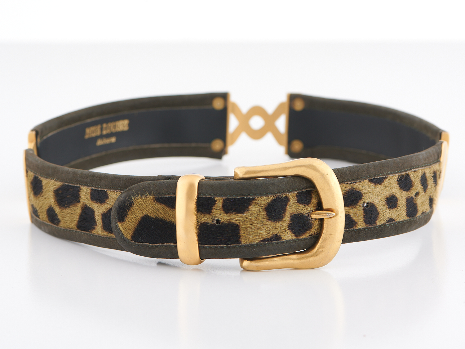 MISS LOUISE, VINTAGE BELT - Styled in green ponyskin, with gold tone spacers and buckle, size approximately 71/78cm.