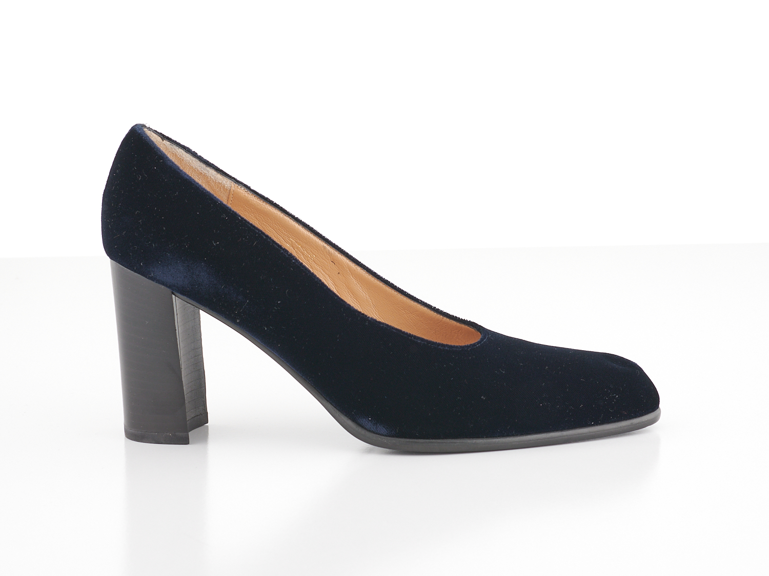 FR ITALIA, PAIR OF PUMPS - Styled in midnight velvet, with block heel, rounded toe and full leather inner, marked size 37.