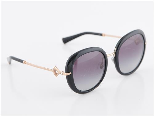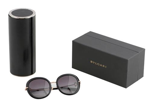BVLGARI, PAIR OF SUNGLASSES - The rounded frames styled in black composite, with gradient lenses and gold tone arms.