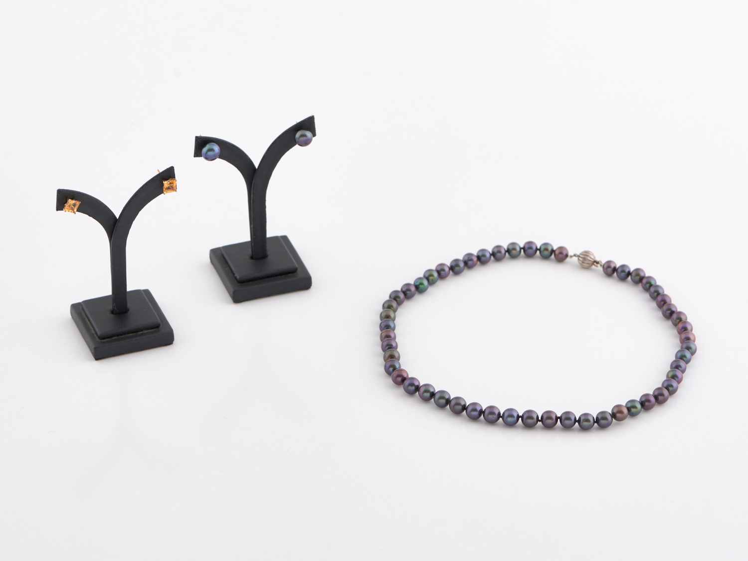 A COLLECTION OF JEWELS INCLUDING A PAIR OF CITRINE STUDS IN 9CT GOLD TO POST AND BUTTERFLY FITTINGS, A STRAND OF FRESHWATER PEARLS TO A BASE METAL CLASP, TOTAL LENGTH 46MM WITH A PAIR OF MATCHING EARRINGS WITH POST AND BUTTERFLY FITTINGS