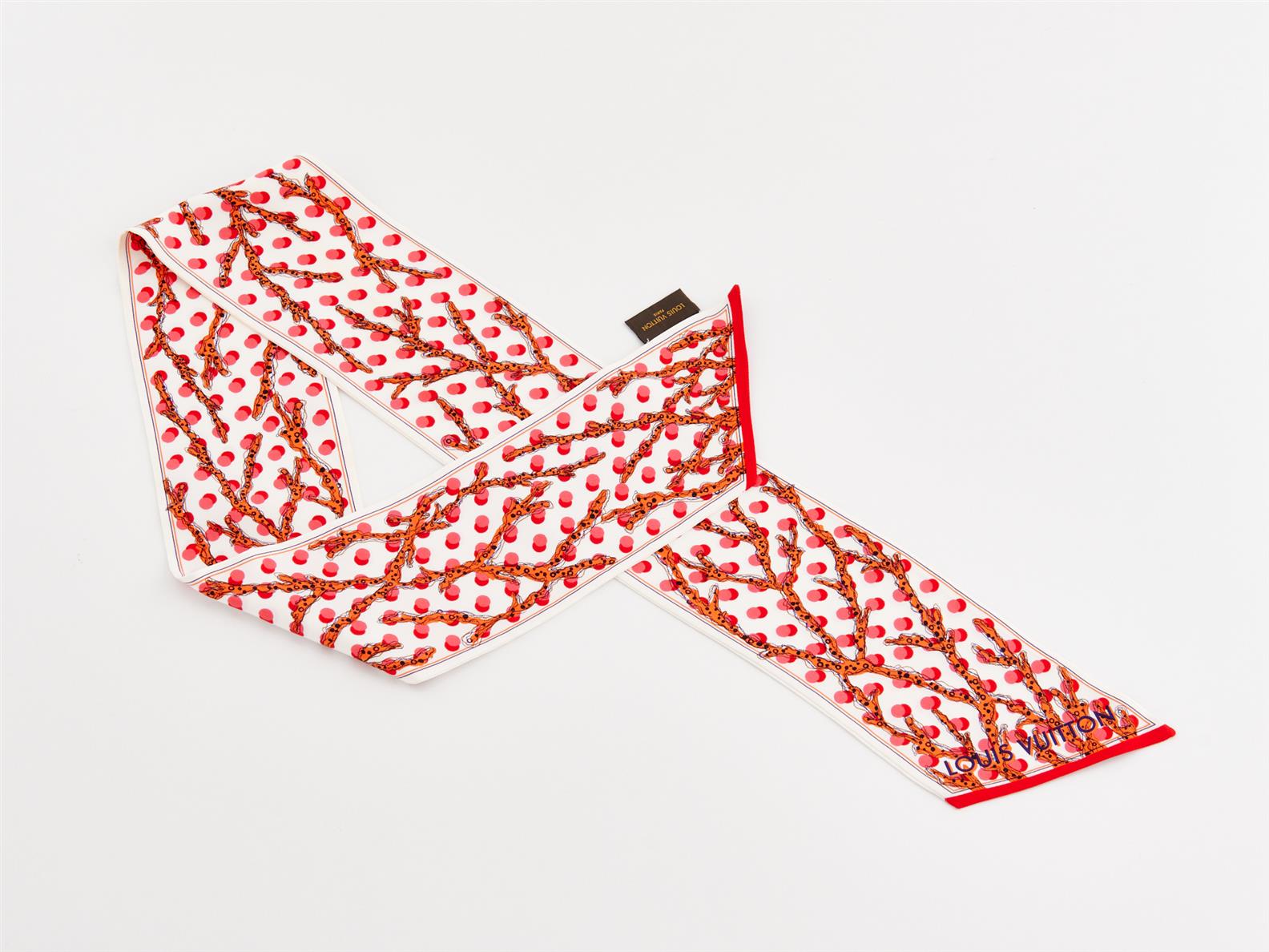 LOUIS VUITTON, SILK BANDEAU - Designed featuring a branch coral print, to a white and polka dot background, 11 x 117cm.