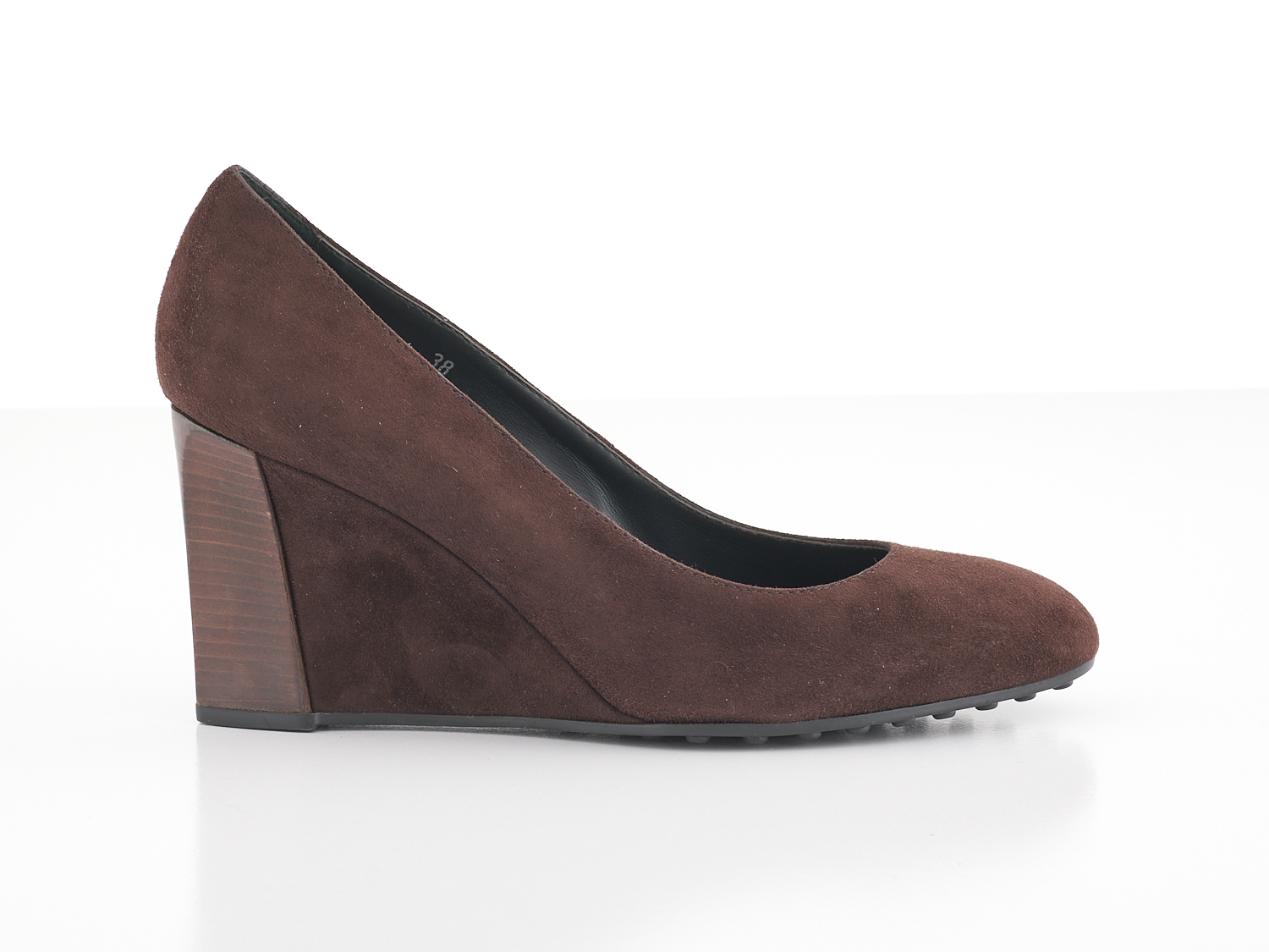 TOD''S, PAIR OF WEDGES - Styled in brown suede with rounded toe, marked size 38.