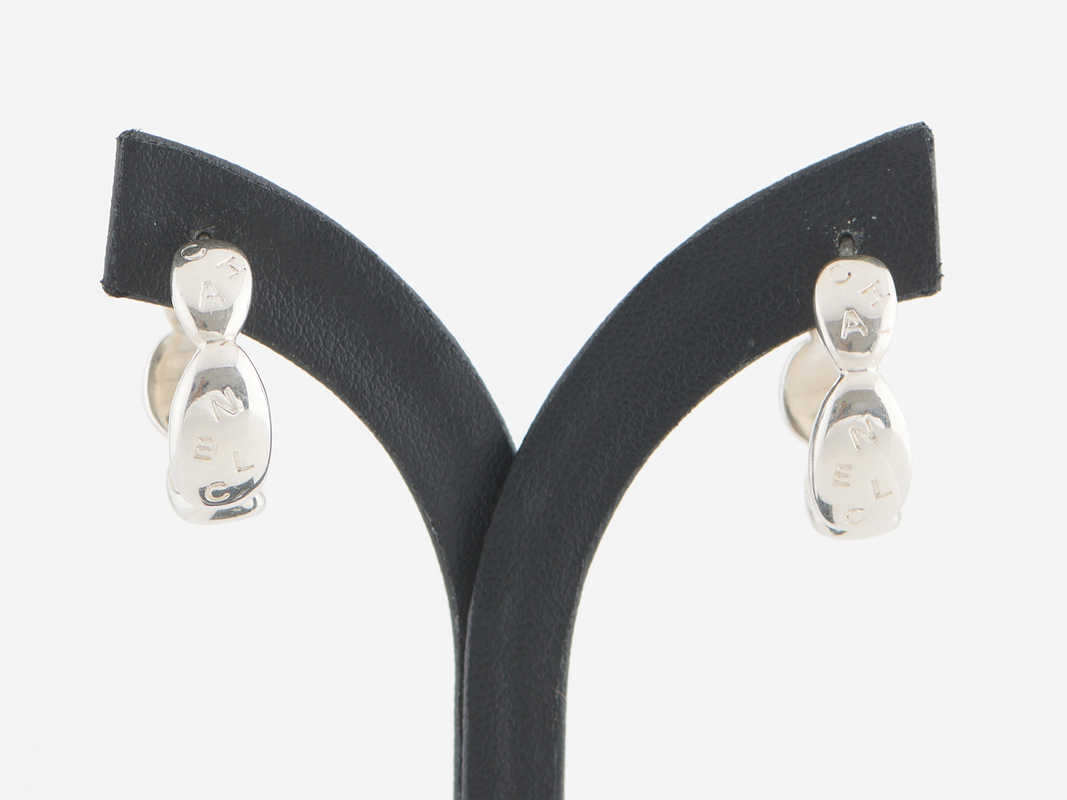 CHANEL, PAIR OF EARRINGS - A pair of sterling silver hoop earrings to post and butterfly fittings, approximate width 7mm, approximate diamter 13mm.