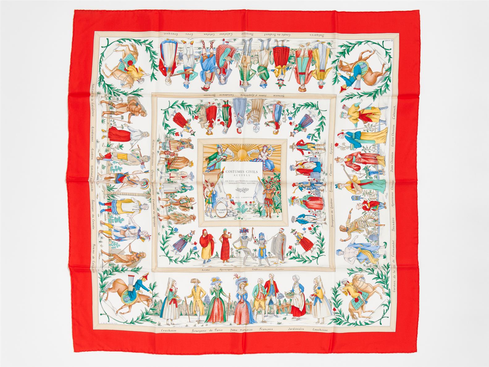 HERMÈS, SILK CARRÉ - The Costumes Civils Actuels design by Françoise de la Perriere, 90cm squared.