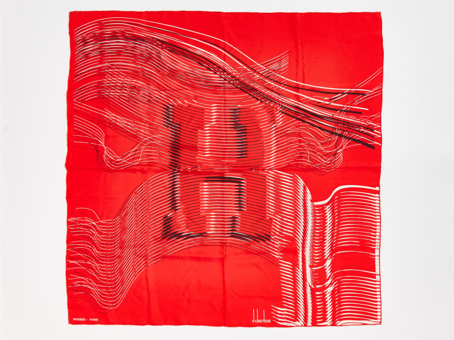 HERMÈS, SILK CARRÉ, 'H CINETIQUE' DESIGN IN RED SILK, 90CM SQUARE