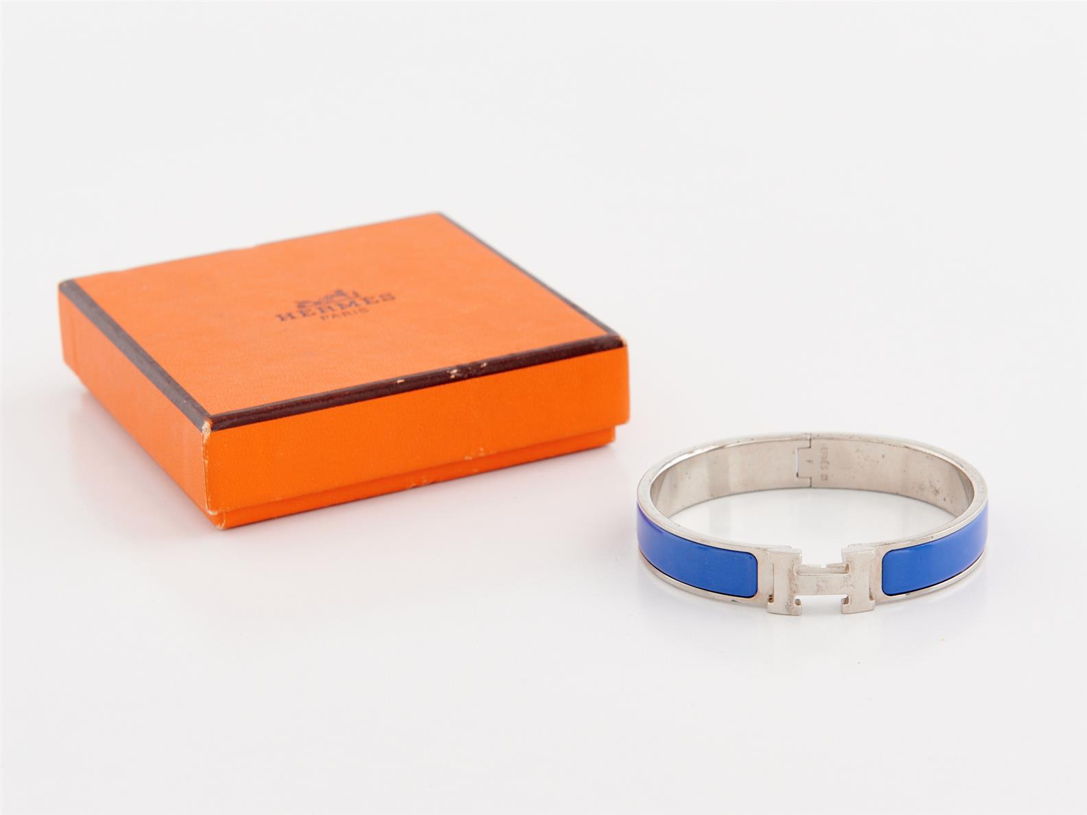 HERMÈS, CLIC 'H' BRACELET - Styled in blue enamel with palladium hardware, boxed.
