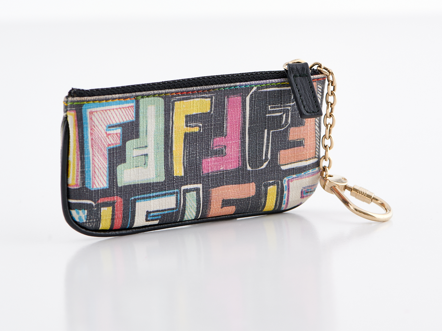 FENDI, ZIP PURSE - Styled in multicoloured FF logo coated canvas, 13 x 7cm.