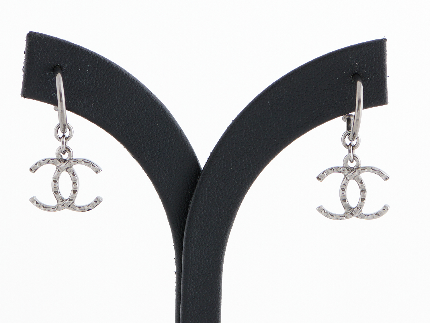 CHANEL, PAIR OF EARRINGS - Styled featuring CC logo drops, to hoops in silver tone metal.