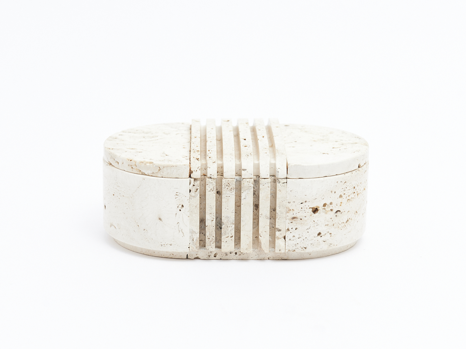 A TRAVERTINE WILLY RIZZO TABLE BOX CIRCA 1970 W.18CM, LEONARD JOEL LOCAL DELIVERY: SMALL