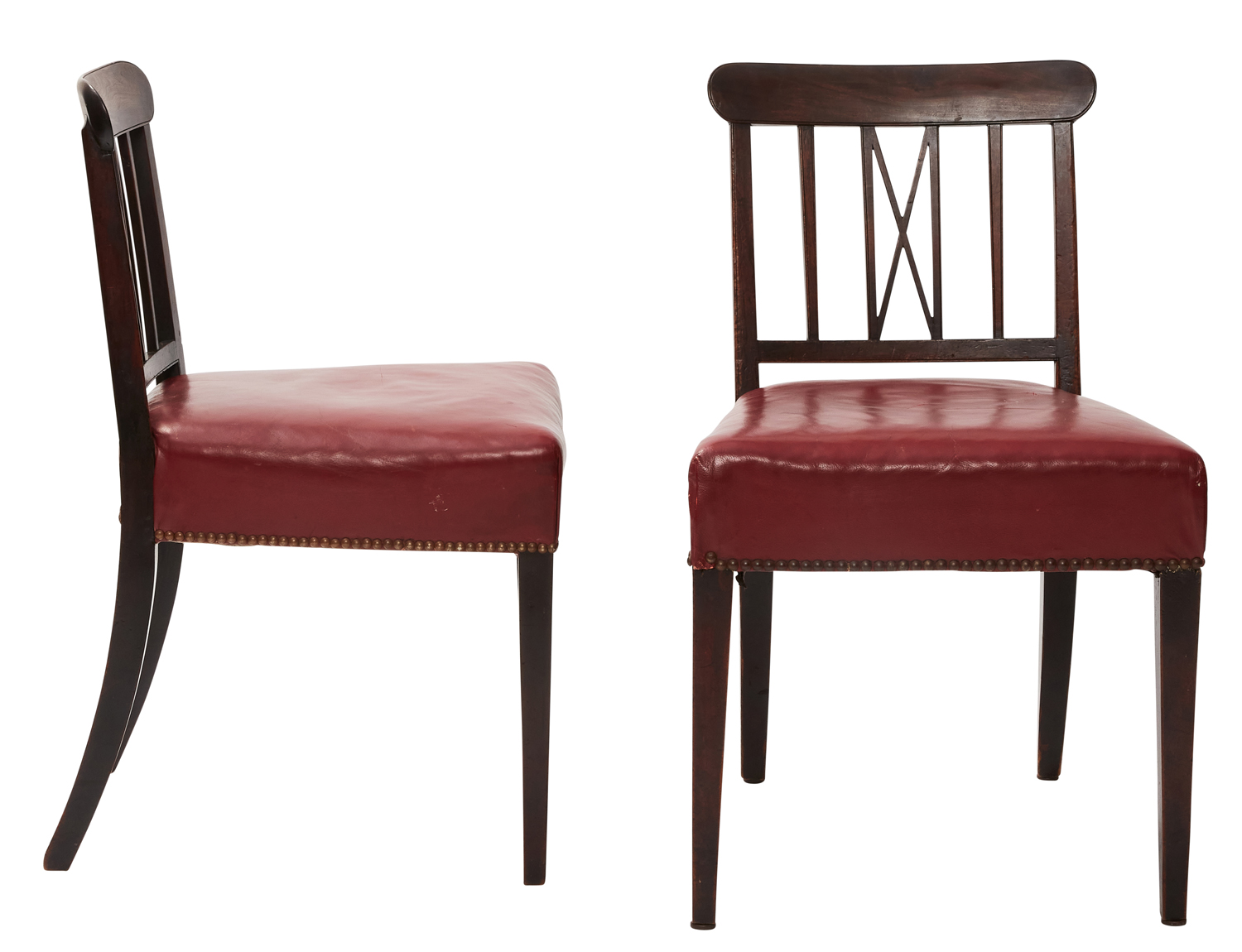A PAIR OF LATE GEORGE III MAHOGANY SIDE CHAIRS