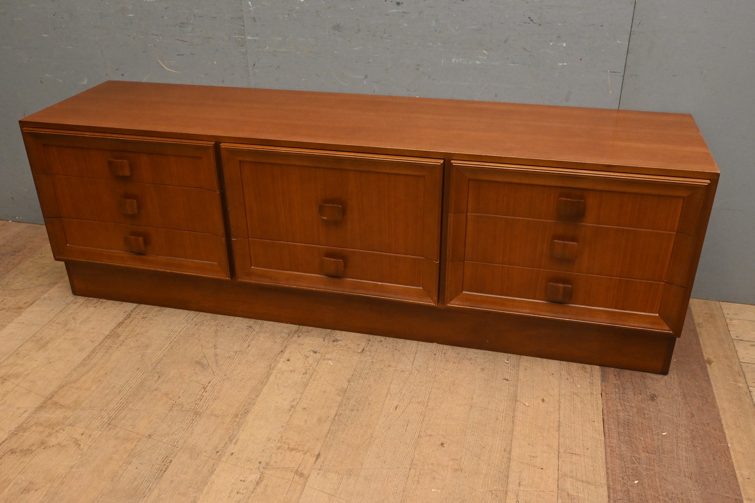 A RETRO TEAK EIGHT DRAWER SIDEBOARD (A/F) ( 60H X 180W X 46D CM) (PLEASE NOTE THIS HEAVY ITEM MUST BE REMOVED BY CLIENTS OR CARRIERS AT THE CUSTOMERS EXPENSE. LEONARD JOEL STAFF CANNOT ASSIST CARRYING THIS ITEM)
