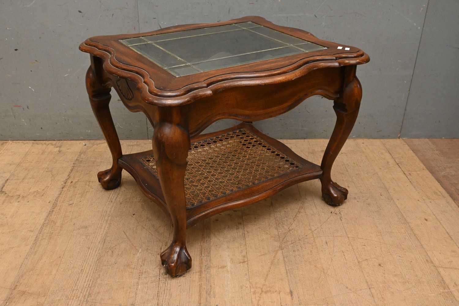 A TIMBER SIDE TABLE WITH BALL AND CLAW FEET (55H X 72W X 62D CM) (LEONARD JOEL DELIVERY SIZE: LARGE)