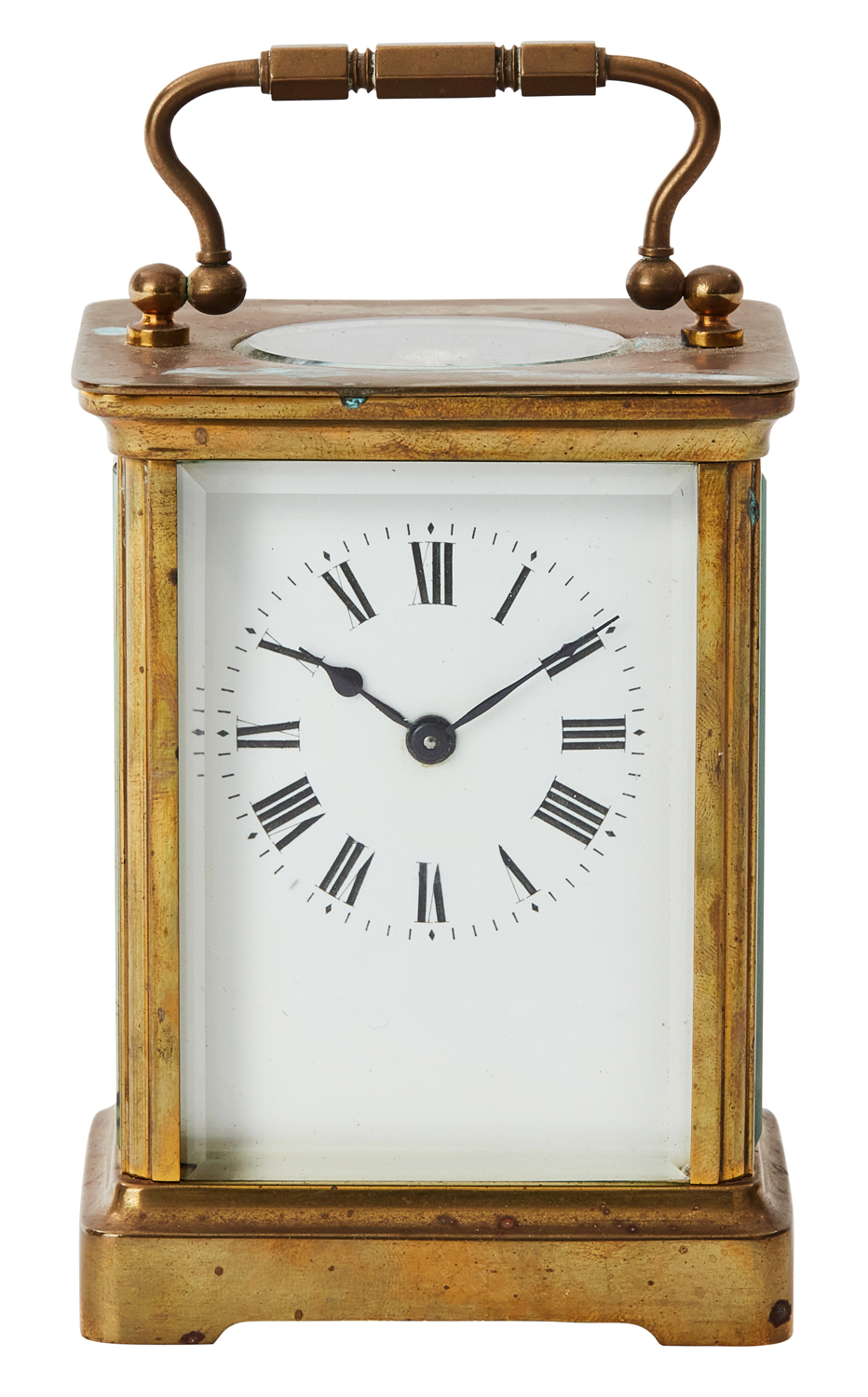 A VICTORIAN BRASS CASED CARRIAGE CLOCK