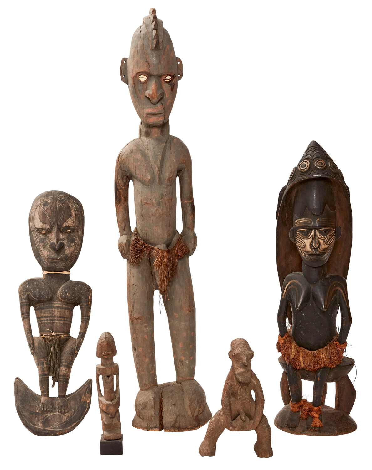 A GROUP OF FIVE POLYNESIAN TRADITIONAL FIGURES