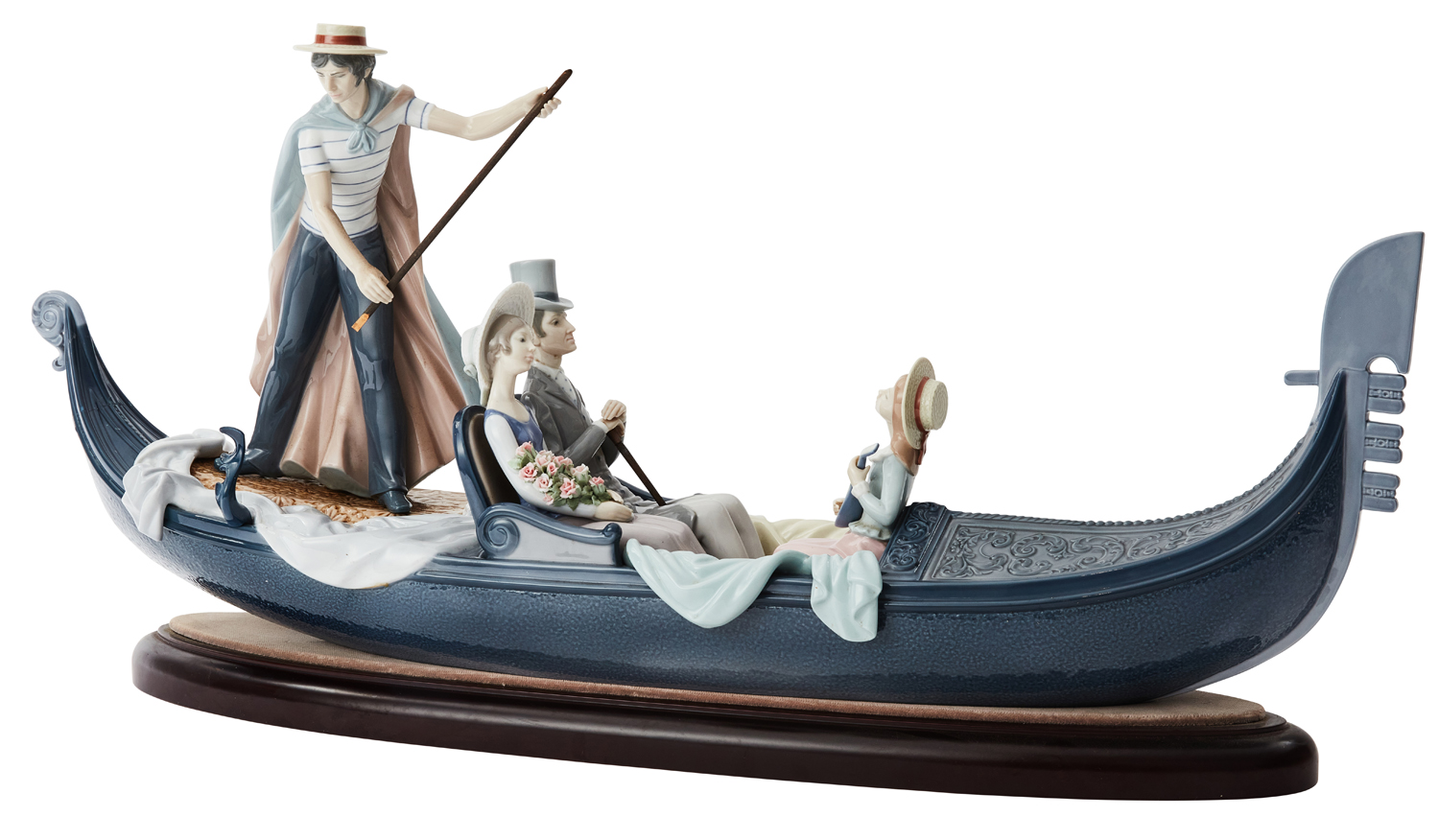 The wooden gondolier's oar broken, the tip of the stern broken and reglued