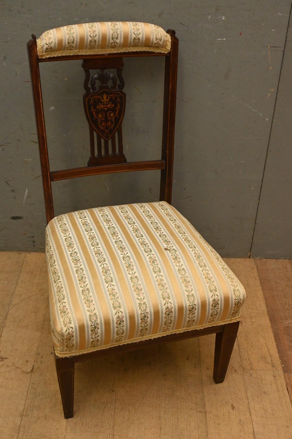 A SHERATON REVIVAL STYLE BIDET CHAIR ( A/F) ( 75H X 43W X 54D CM) (LEONARD JOEL DELIVERY SIZE: LARGE)