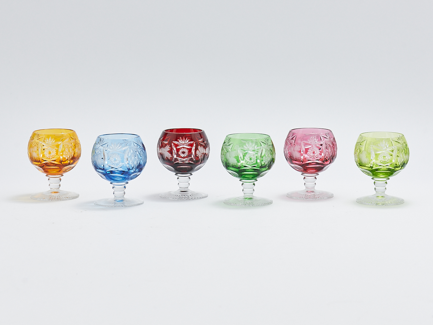 A SET OF SIX HARLEQUIN CRYSTAL GLASSES H.8CM, LEONARD JOEL LOCAL DELIVERY: SMALL