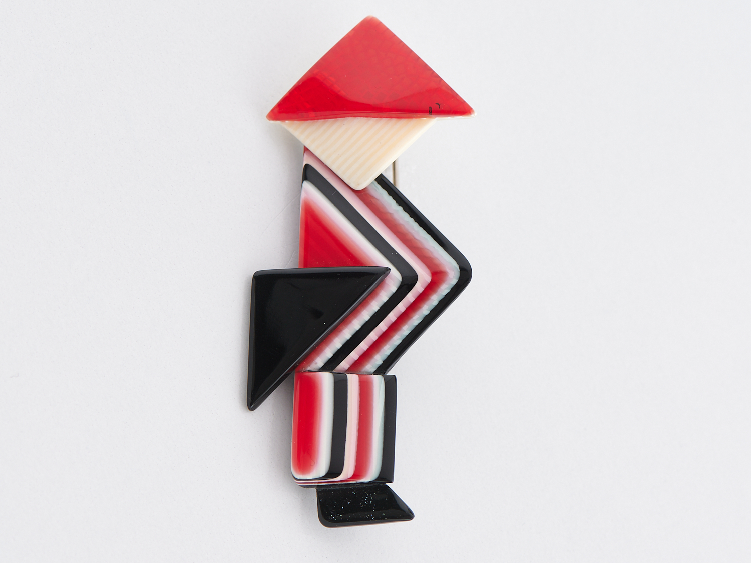 A GEOMETRIC BROOCH BY LEA STEIN DEPICTING A PERSON, APPROXIMATE SIZE 56 X 26MM (AT WIDEST)