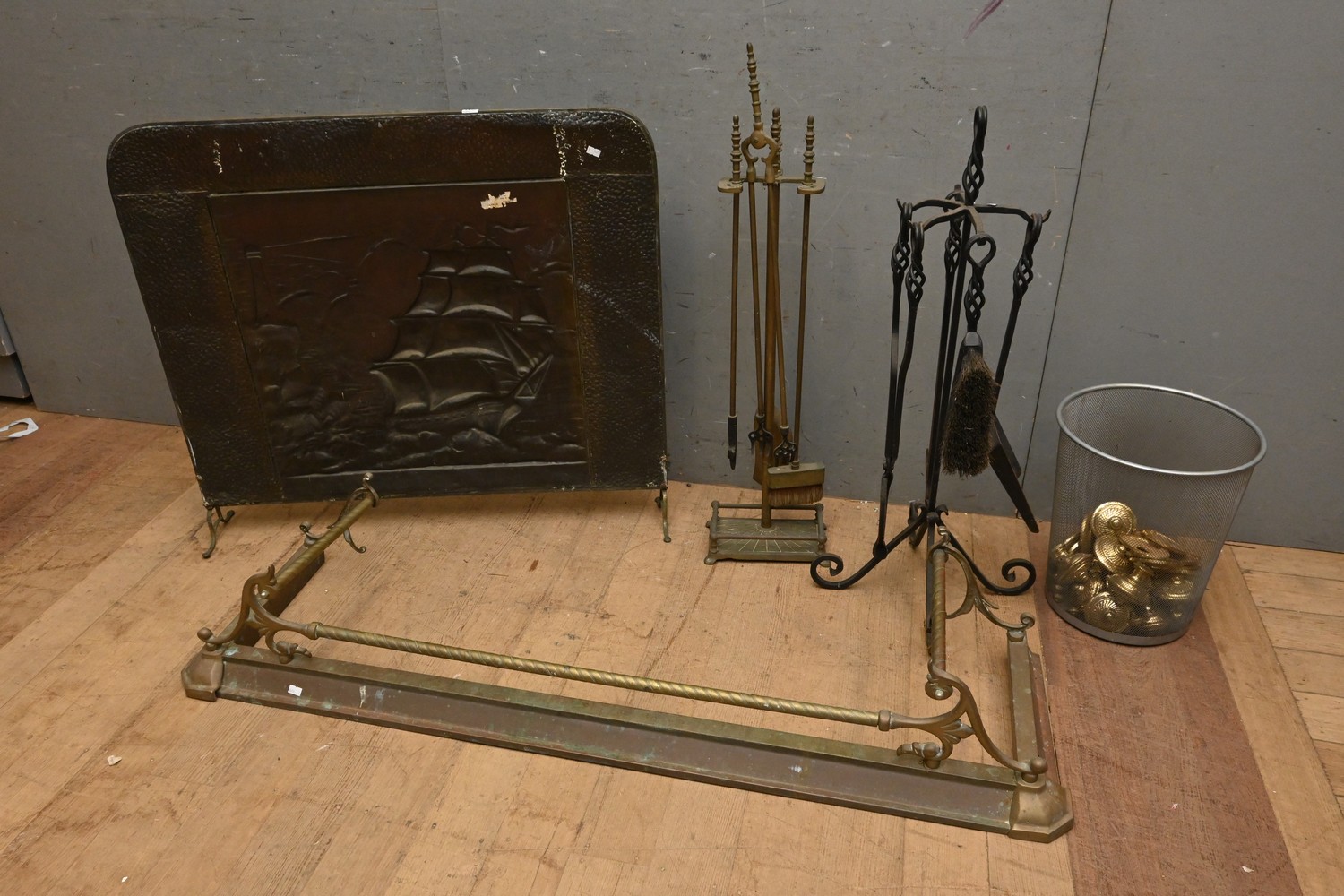 A COLLECTION OF FIRE TOOLS INCLUDING GAURD AND FIRE SCREEN (SCREEN 80H X 90W CM) (LEONARD JOEL DELIVERY SIZE: X-LARGE)