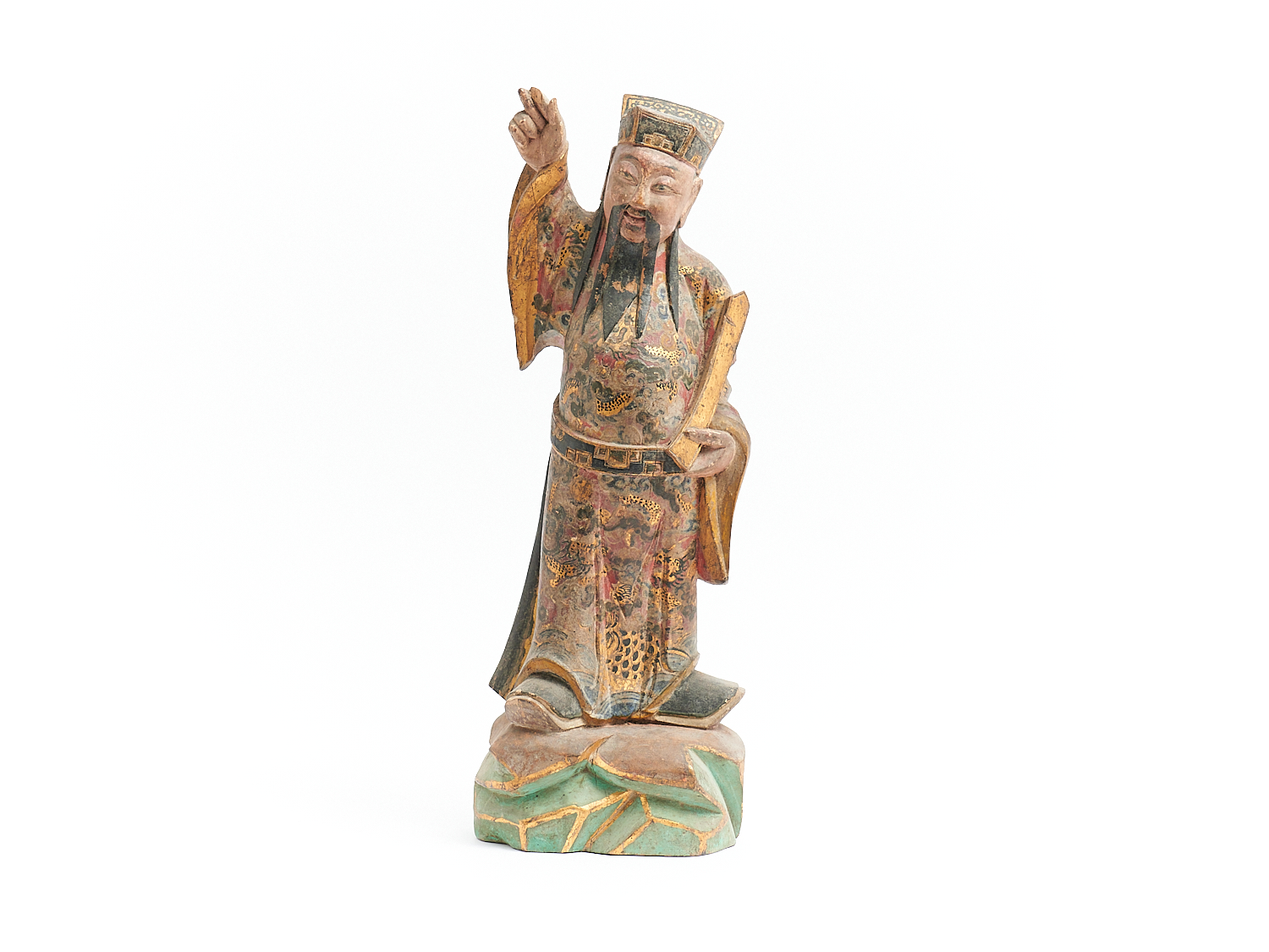 A CARVED WOOD POLYCHROME FIGURE WITH GILT DETAILS, H.38CM, LEONARD JOEL LOCAL DELIVERY: MEDIUM