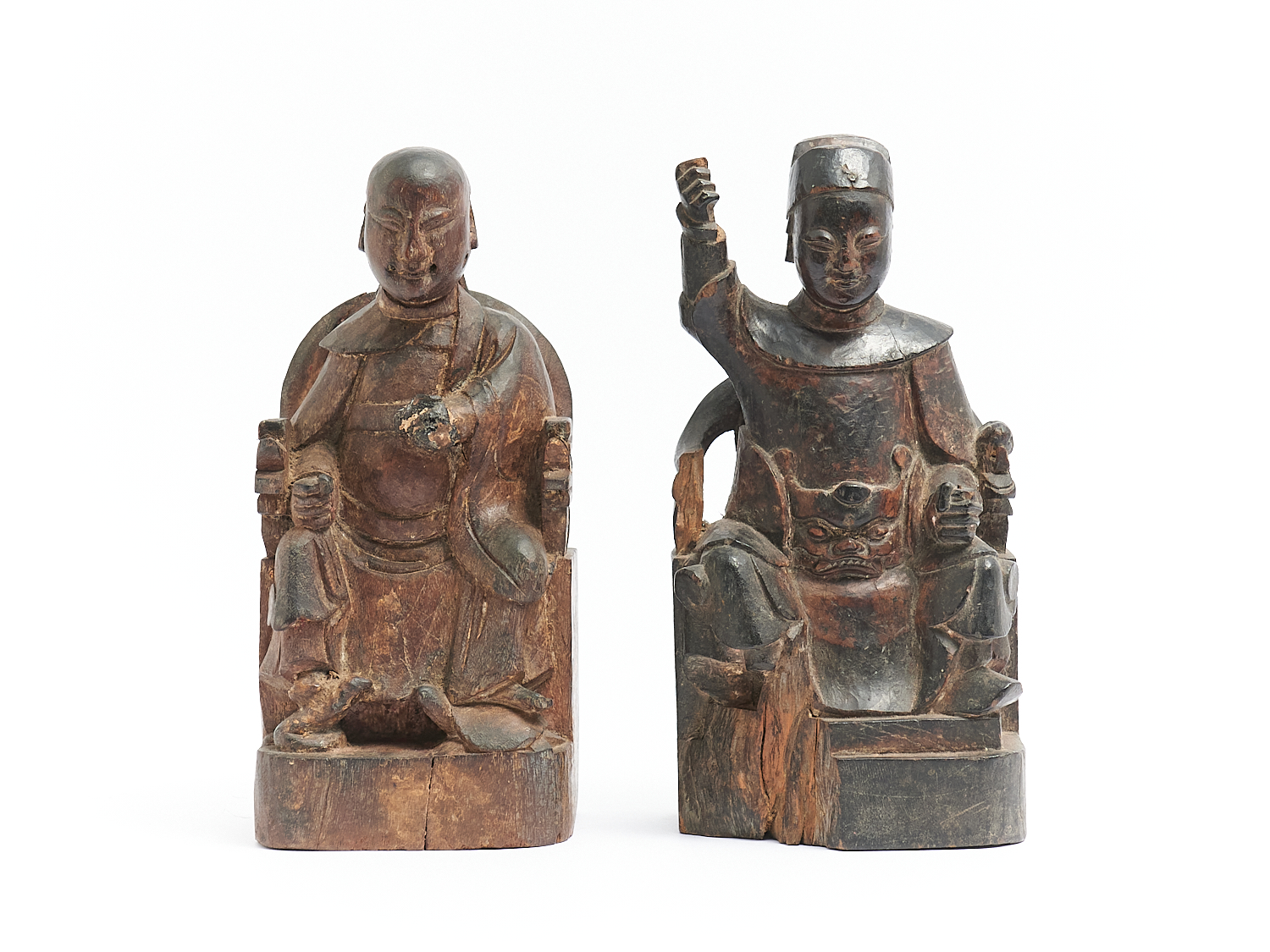 TWO CHINESE CARVED WOOD TEMPLE FIGURES, ONE LATE MING PERIOD, H.23CM, LEONARD JOEL LOCAL DELIVERY: SMALL