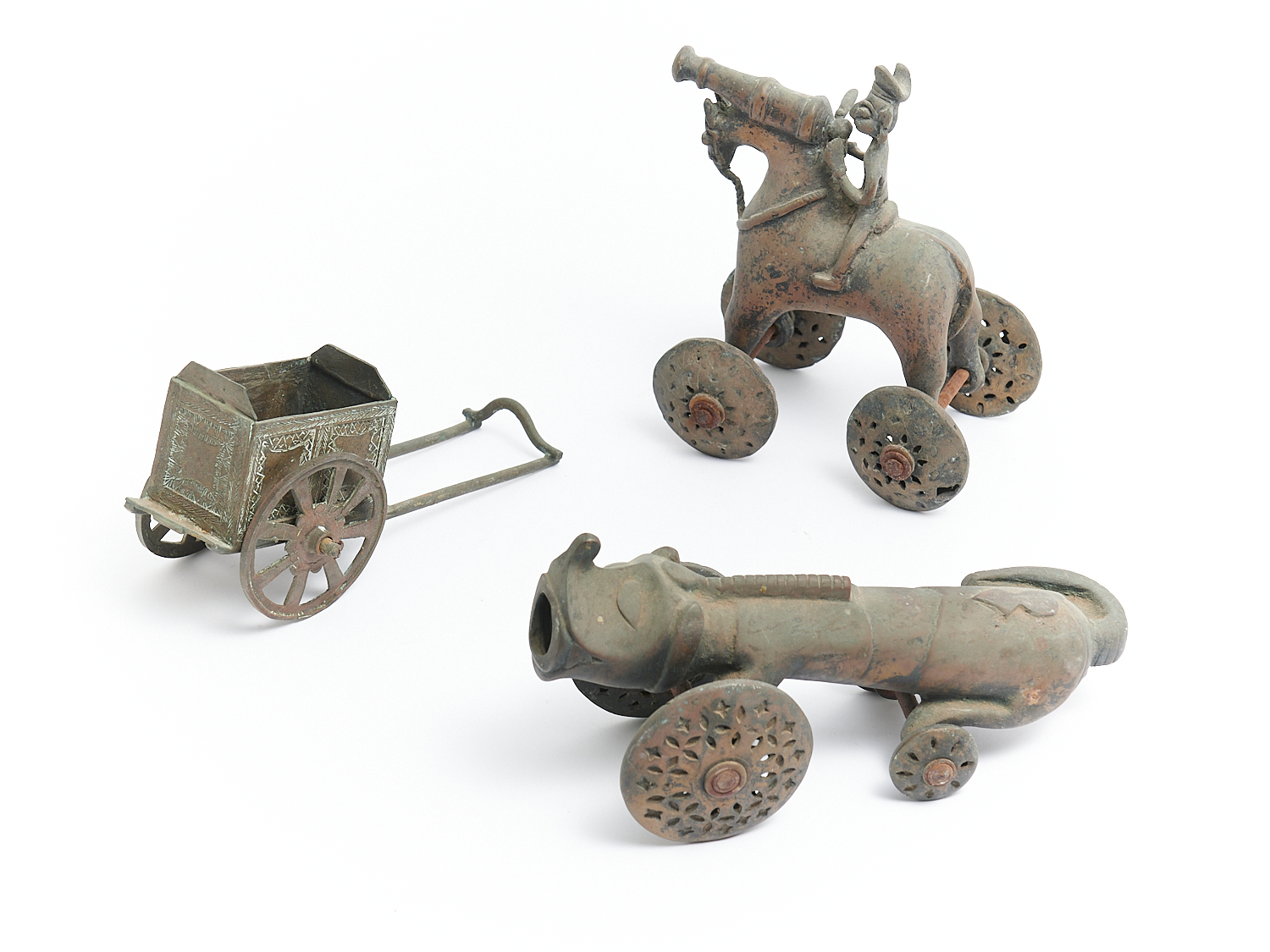 TWO SMALL CAST METAL CANNONS L.27CM (LARGEST), LEONARD JOEL LOCAL DELIVERY: SMALL