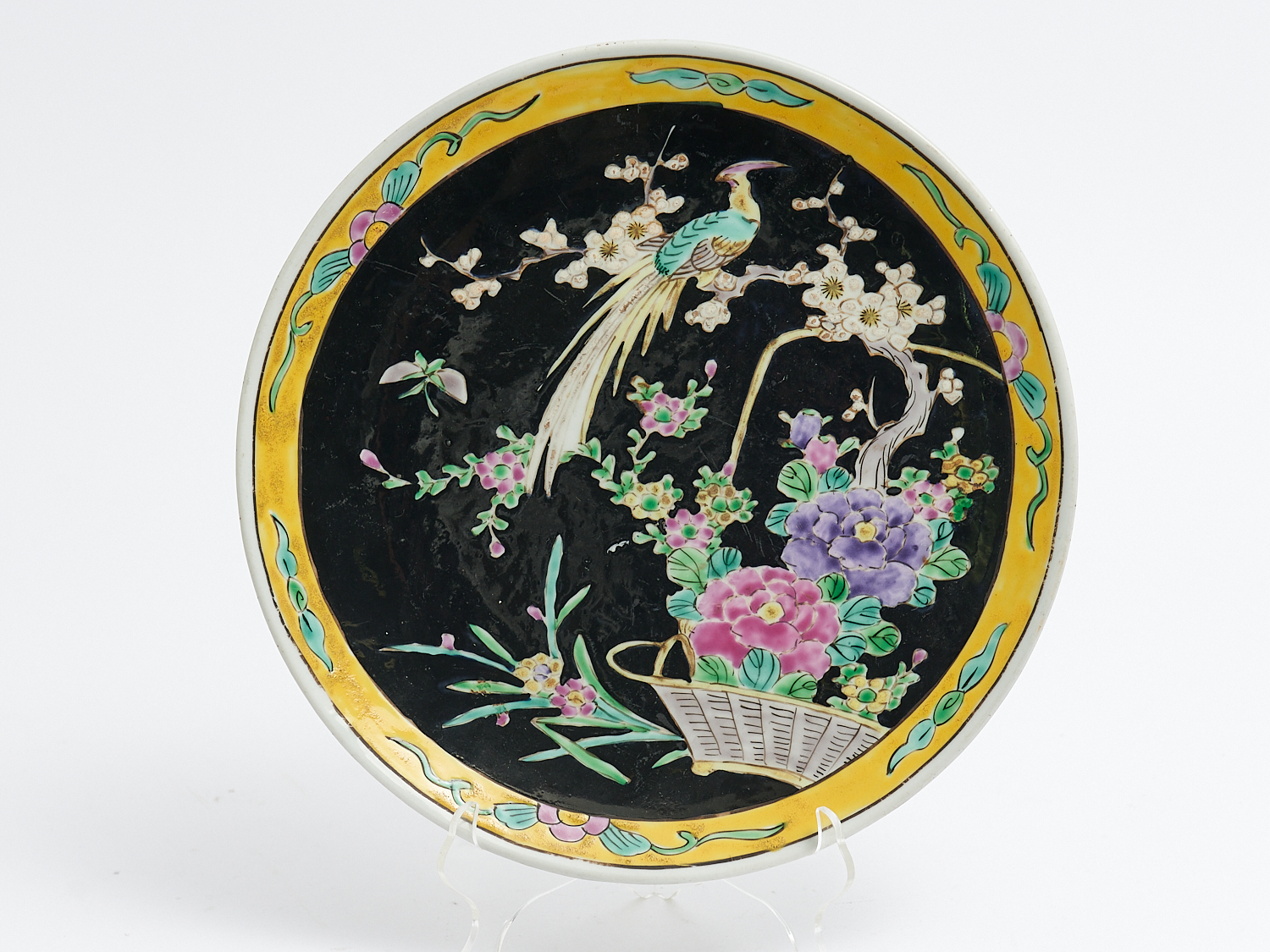 A CHINESE FAMILLE NOIR PLATE DIA.24.5CM, LEONARD JOEL LOCAL DELIVERY: SMALL