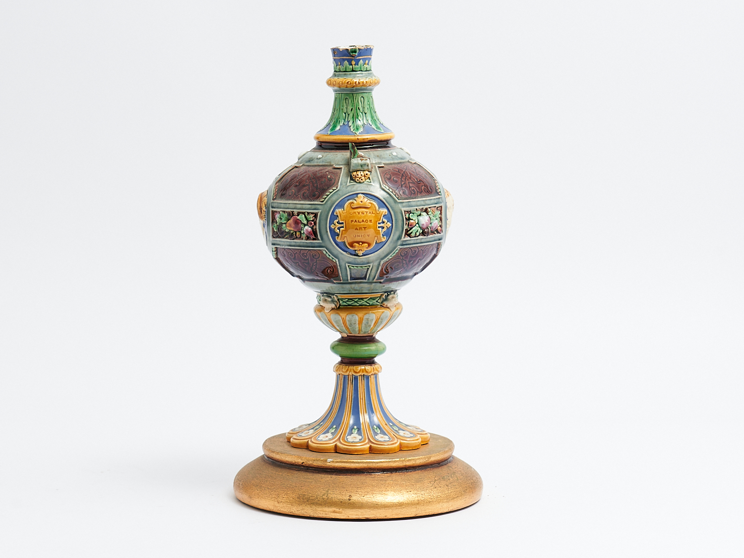 A MINTON MAJOLICA "CRYSTAL PALACE ART UNION" URN (A/F CHIPS, LOSES, TRUNCATED) H.30CM, LEONARD JOEL LOCAL DELIVERY: SMALL