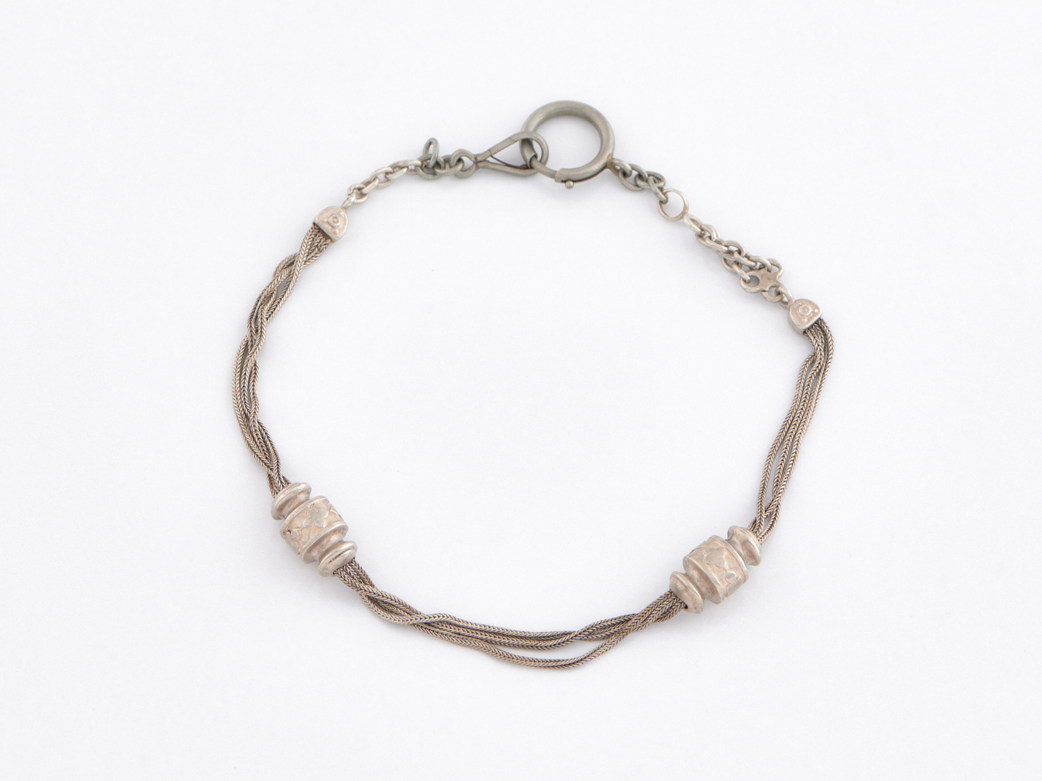 A FOB WATCH CHAIN IN CONTINENTAL SILVER (CLASP IN BASE METAL), LENGTH APPROXIMATELY 370MM, WEIGHT APPROXIMATELY 21.7GMS