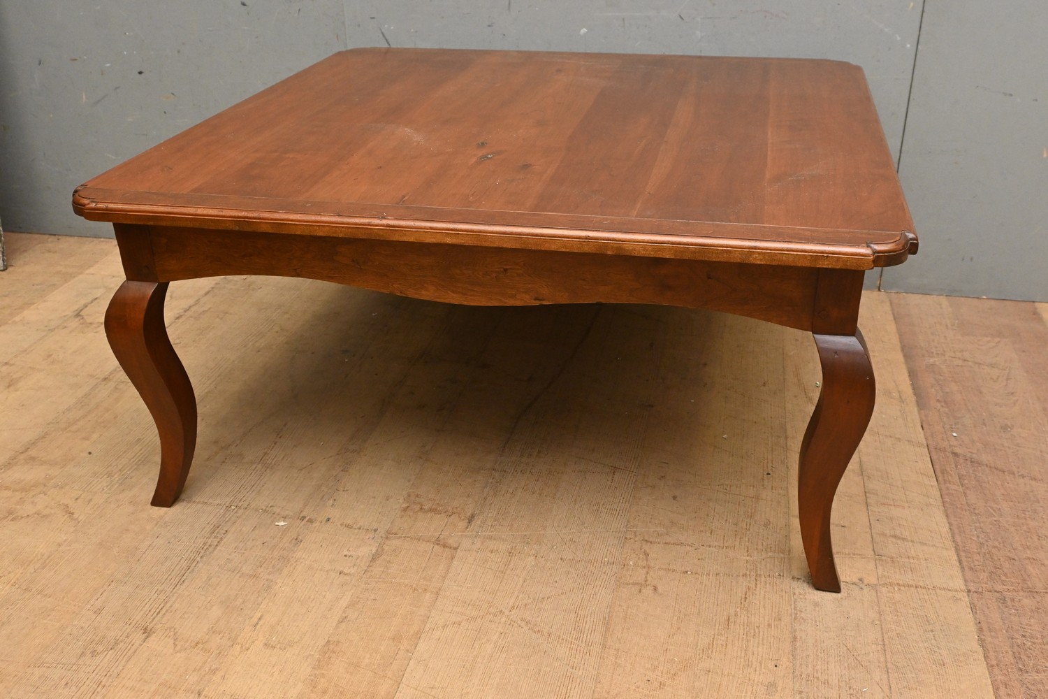 A PROVINCIAL STYLE SOLID CHERRYWOOD COFFEE TABLE ( 48H X 102W X 98D CM) (LEONARD JOEL DELIVERY SIZE: LARGE)