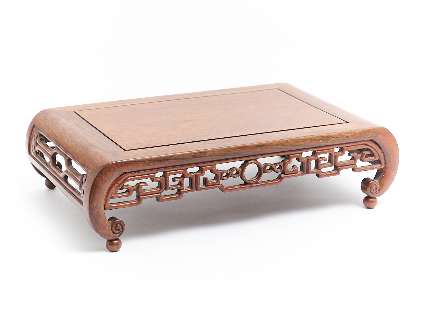 A CHINESE CARVED ROSEWOOD RECTANGULAR STAND, H.11.5CM X W.42CM X D.27CM, LEONARD JOEL LOCAL DELIVERY: MEDIUM