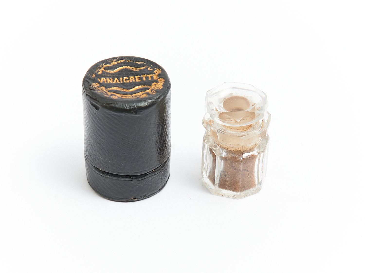 AN EARLY VICTORIAN LEATHER CASED GLASS VINAIGRETTE, W.3.8CM, LEONARD JOEL LOCAL DELIVERY: SMALL