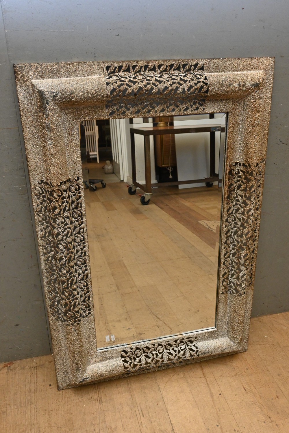 A DECORATIVE METAL MIRROR ( 112H X 76D CM) (LEONARD JOEL DELIVERY SIZE: LARGE)