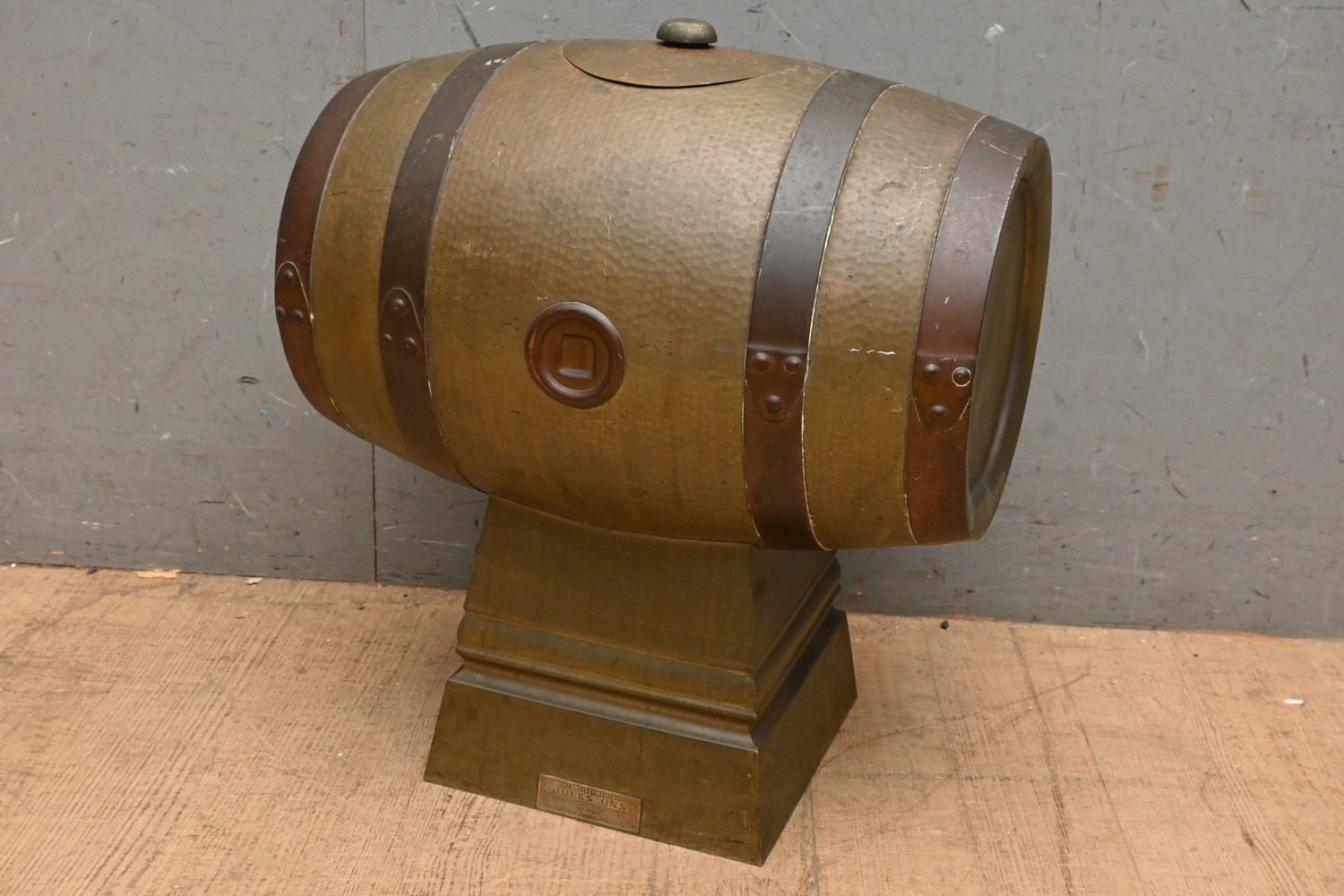 A VINTAGE FRENCH PRESSED BRASS BARRELL FORM BARTOP TAP DRINKS DISPENSER (A/F) ( 55H X 48W X 35D CM) (LEONARD JOEL DELIVERY SIZE: LARGE)