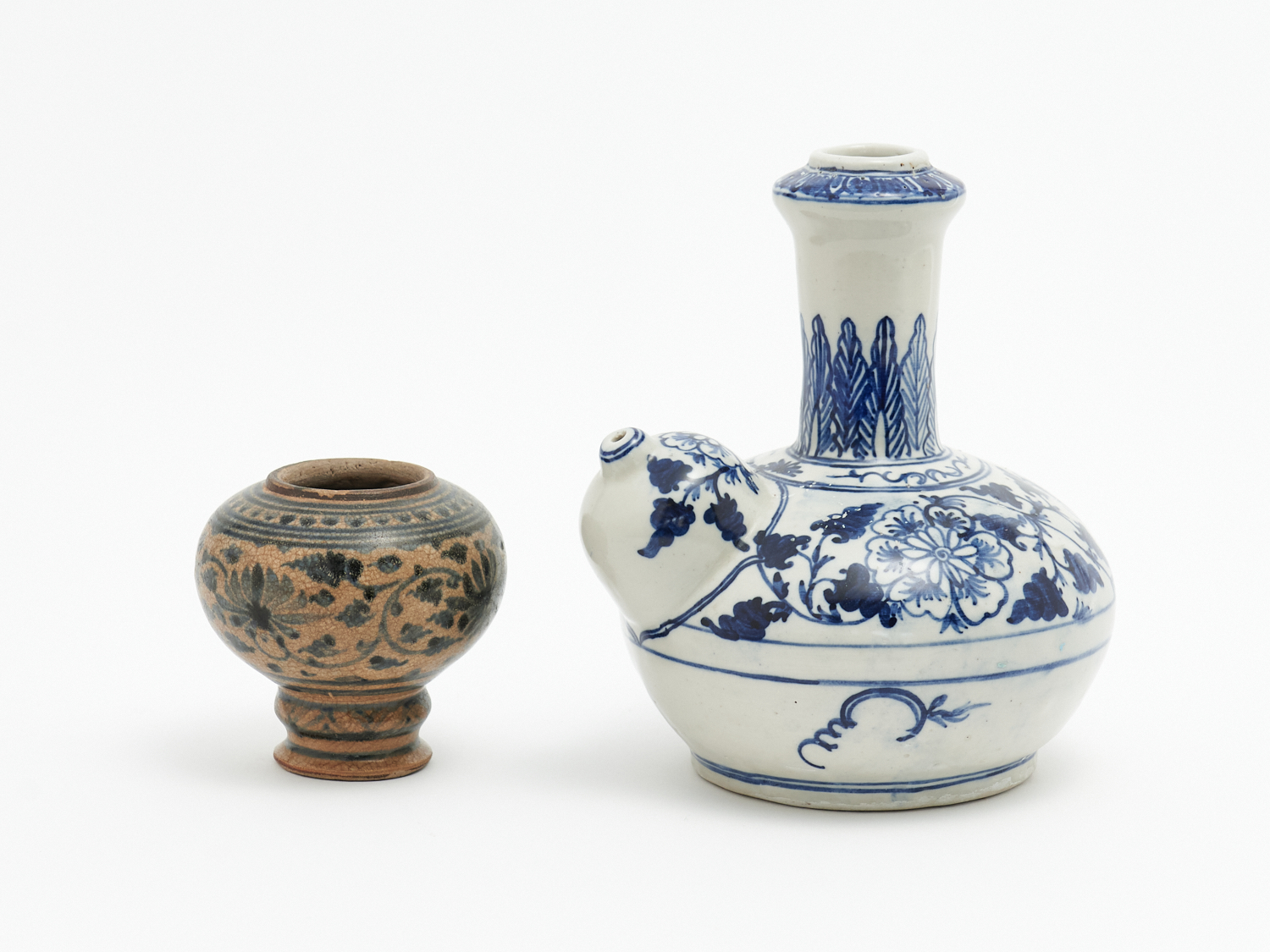 A BLUE & WHITE KENDI AND POT H.22CM (TALLEST), LEONARD JOEL LOCAL DELIVERY: MEDIUM