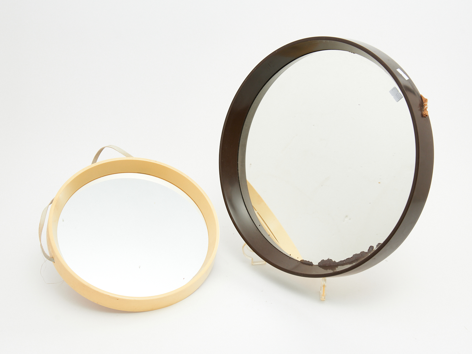 TWO DANISH CIRCULAR MIRRORS (A/F) DIA.39CM (LARGEST), LEONARD JOEL LOCAL DELIVERY: MEDIUM
