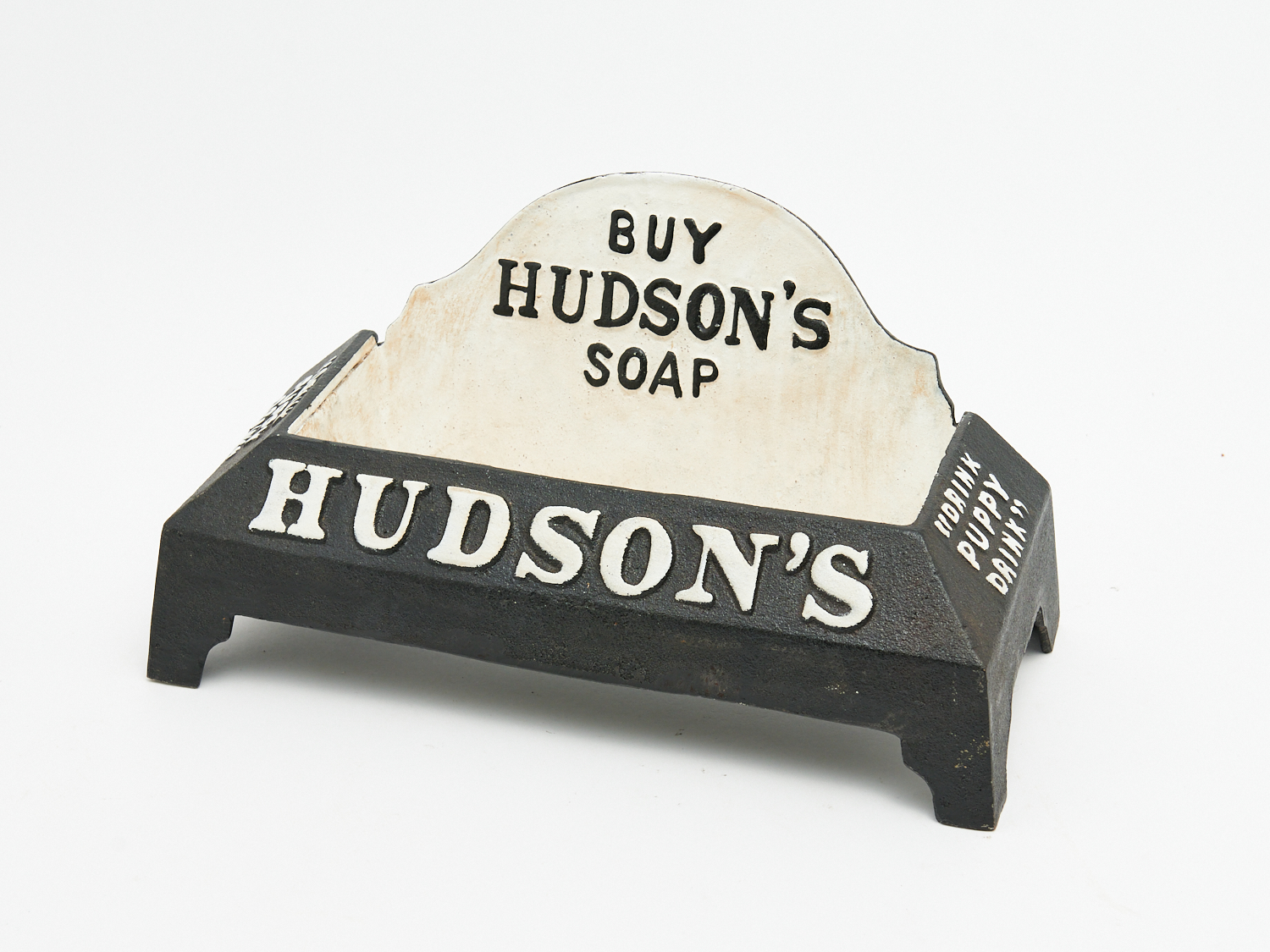 A REPRODUCTION CAST IRON PROMOTIONAL HUDSON'S SOAP DOG BOWL "DRINK PUPPY DRINK" W.38CM, LEONARD JOEL LOCAL DELIVERY: MEDIUM