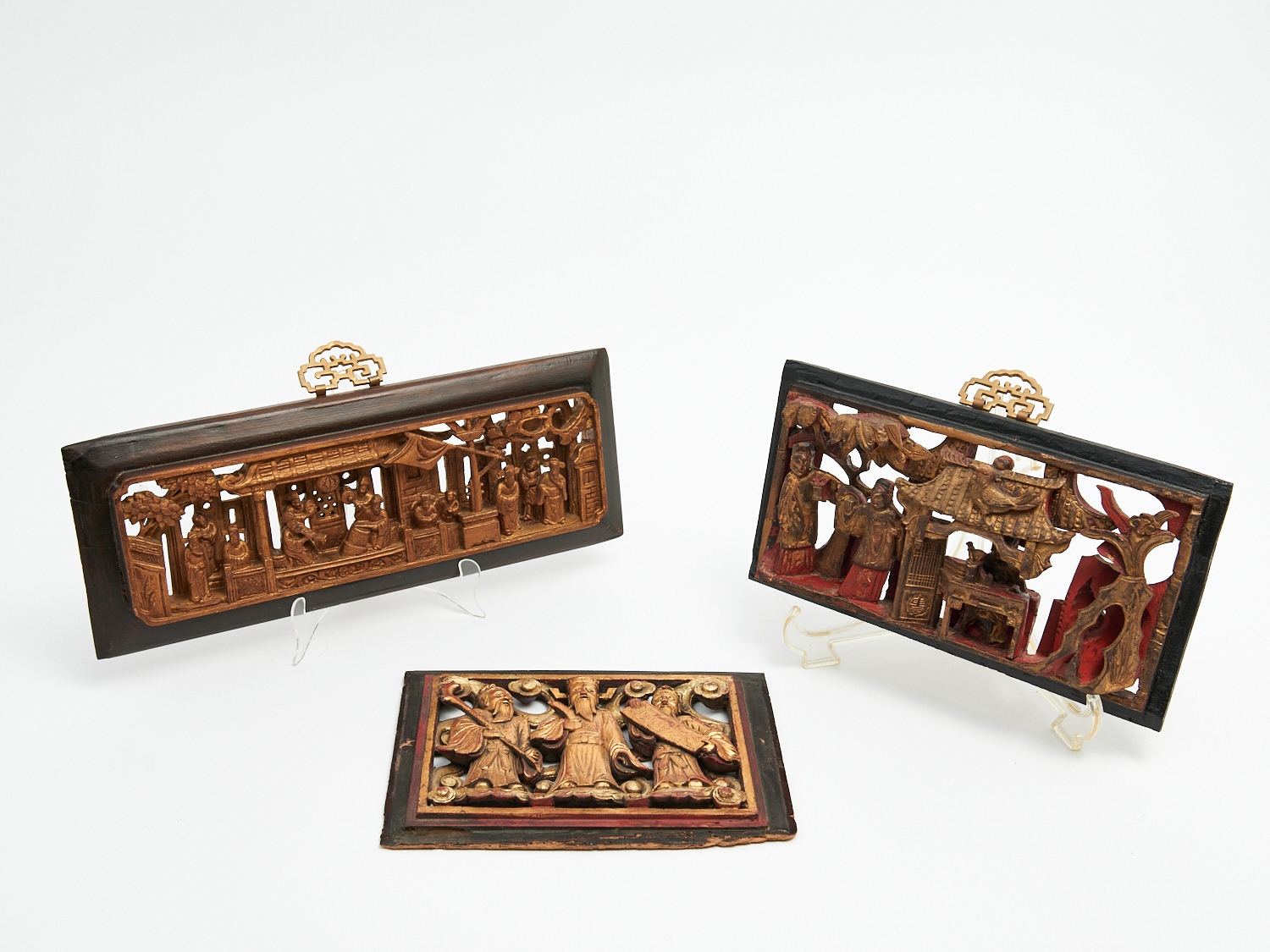 THREE CHINESE GILTWOOD CARVINGS W.38CM (LARGEST), LEONARD JOEL LOCAL DELIVERY: SMALL