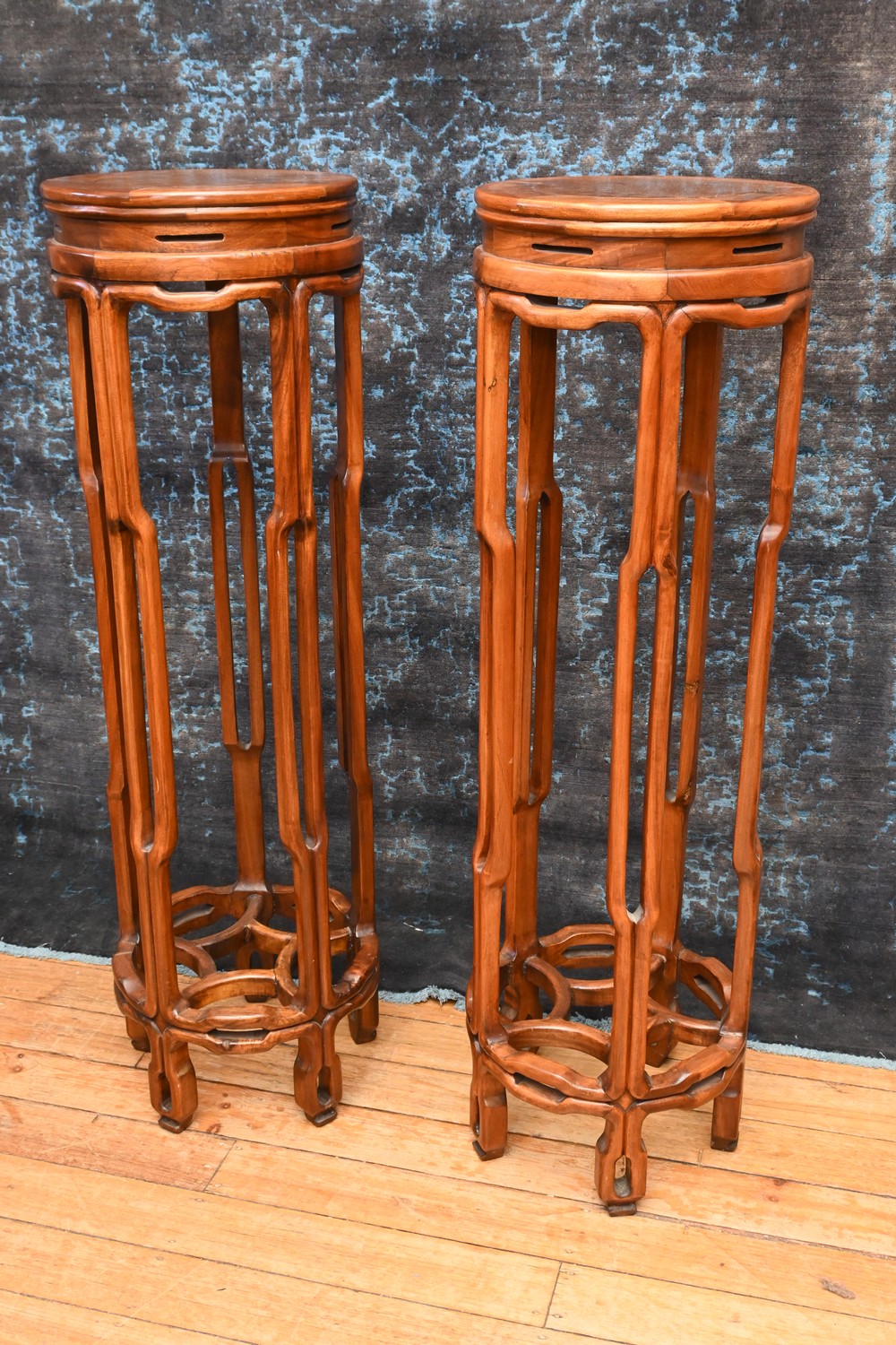 TWO CHINESE WOODEN PEDASTALS (120H X 36 DIAMETER CM) (LEONARD JOEL DELIVERY SIZE: LARGE)