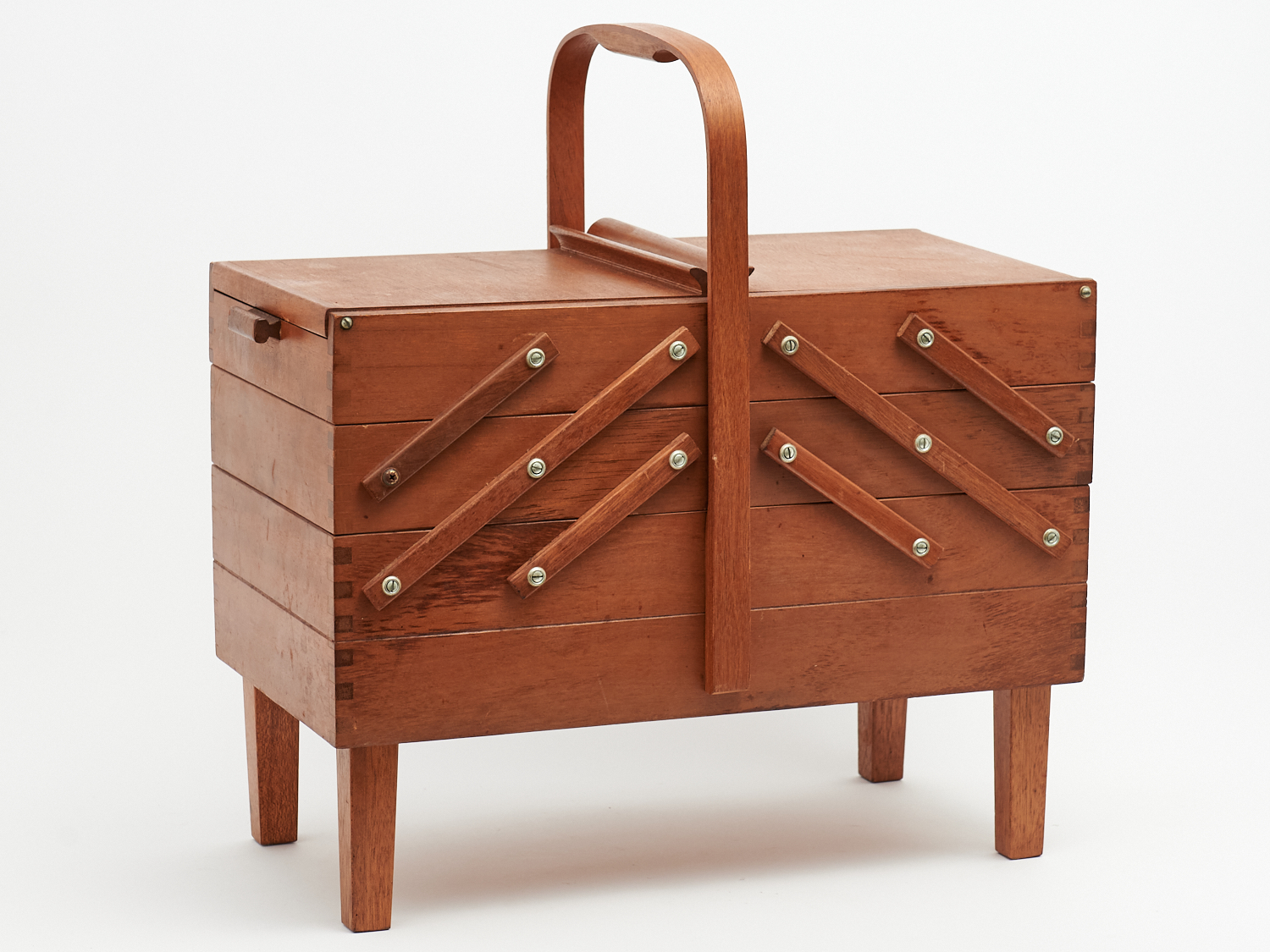 A WOODEN SINGER SEWING BOX WITH CONTENTS H.53CM X W.52CM, LEONARD JOEL LOCAL DELIVERY: MEDIUM