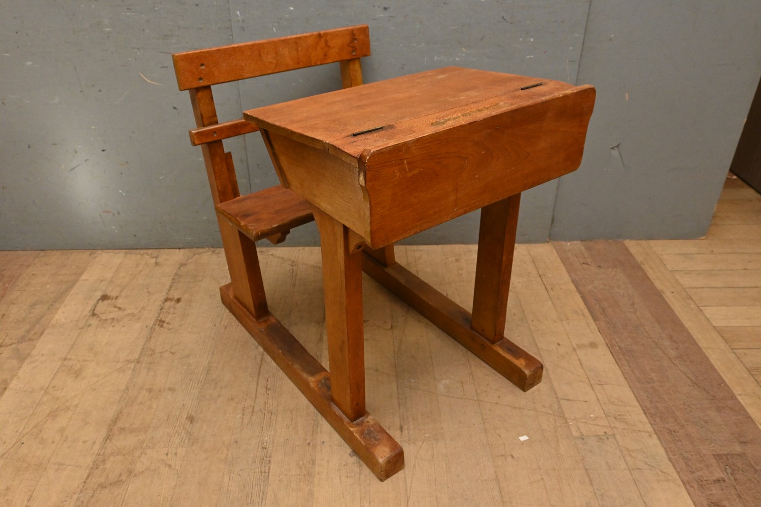 A VINTAGE TIMBER SCHOOL DESK ( 82H X 62W X 88D CM) (LEONARD JOEL DELIVERY SIZE: X-LARGE)