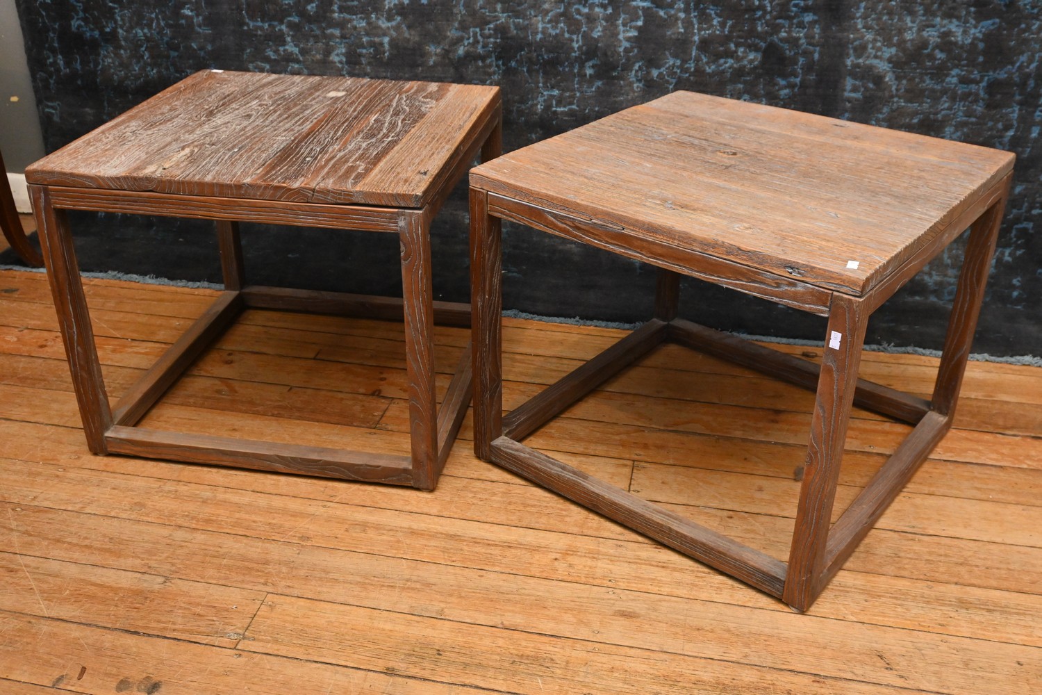 A PAIR OF PROVINCIAL STYLE SQUARE FORM SIDE TABLES ( 51H X 56W X 60D CM) (LEONARD JOEL DELIVERY SIZE: X- LARGE)