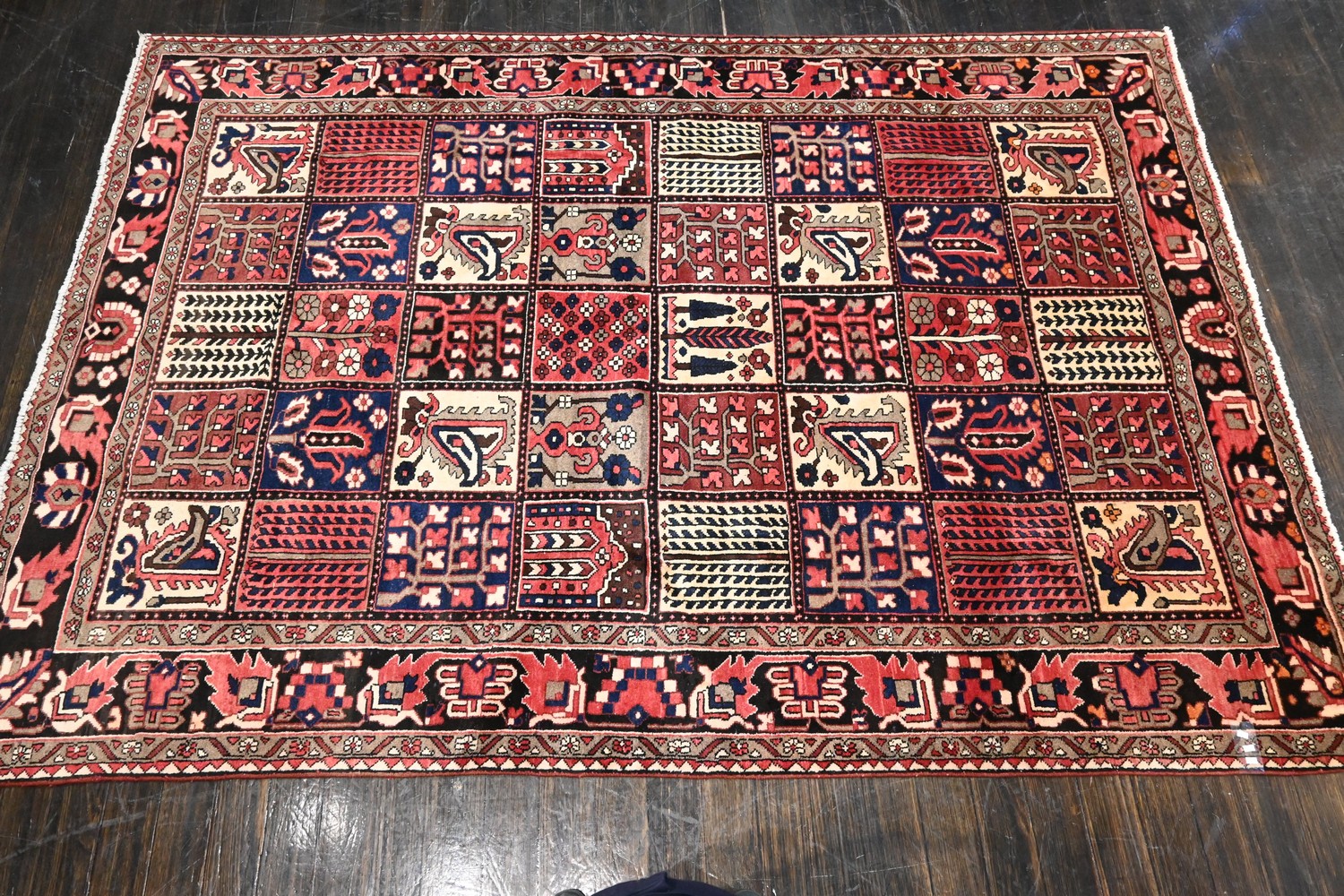 A FINE PERSIAN BAKTIAR GARDEN DESIGN RUG IN TONES OF CREA, RED AND BLUE (304 X 210 CM) (PLEASE NOTE THIS HEAVY ITEM MUST BE REMOVED BY CLIENTS OR CARRIERS AT THE CUSTOMERS EXPENSE. LEONARD JOEL STAFF CANNOT ASSIST CARRYING THIS ITEM)