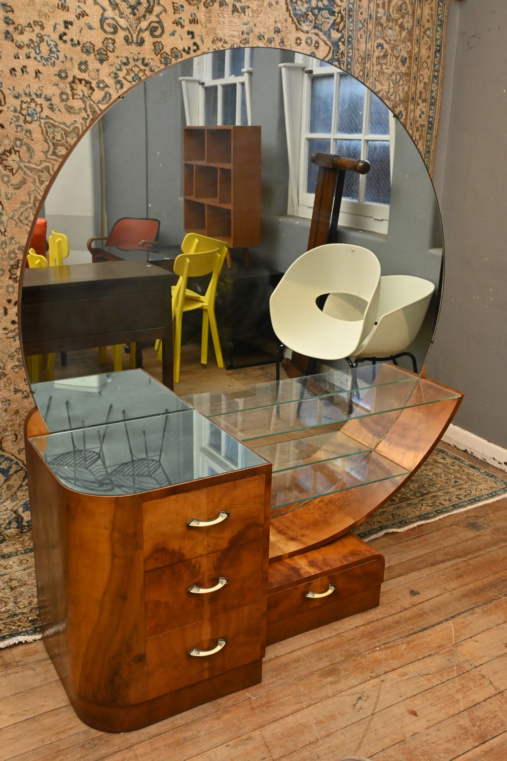 AN ART DECO MIRRORBACK DRESSER ( 170H X 150W X 53D CM) (PLEASE NOTE THIS HEAVY ITEM MUST BE REMOVED BY CLIENTS OR CARRIERS AT THE CUSTOMERS EXPENSE. LEONARD JOEL STAFF CANNOT ASSIST CARRYING THIS ITEM)