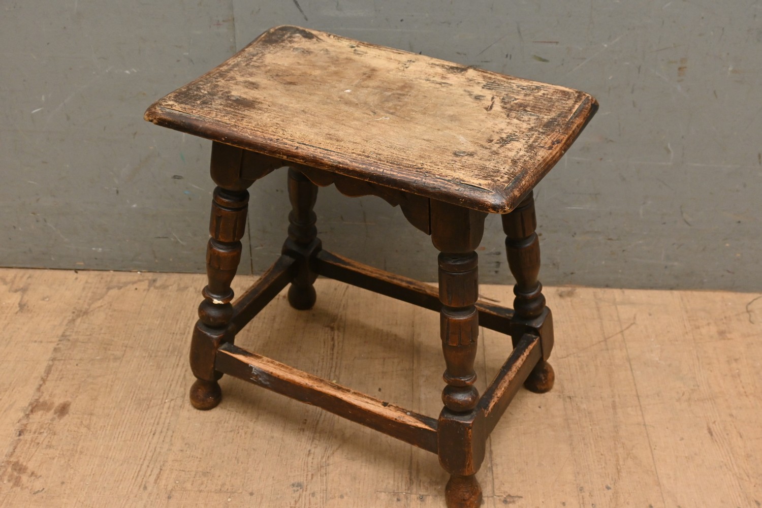 A RUSTIC OAK STOOL ( A/F) ( 46H X 47W X 30D CM) (LEONARD JOEL DELIVERY SIZE: MEDIUM)