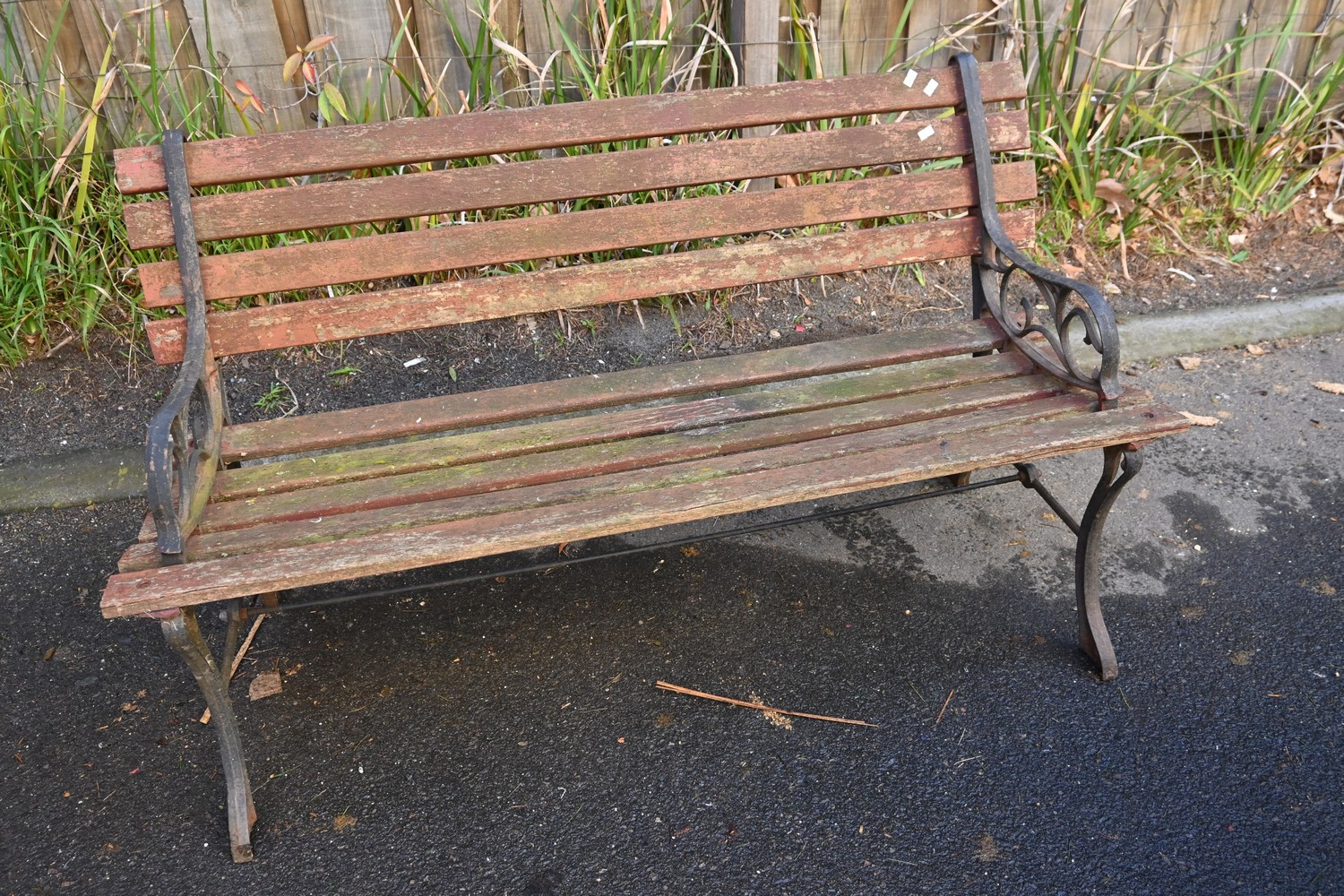 A CAST IRON SLATTED BENCH (A/F) ( 70H X 122W X 56D CM) (LEONARD JOEL DELIVERY SIZE: LARGE)