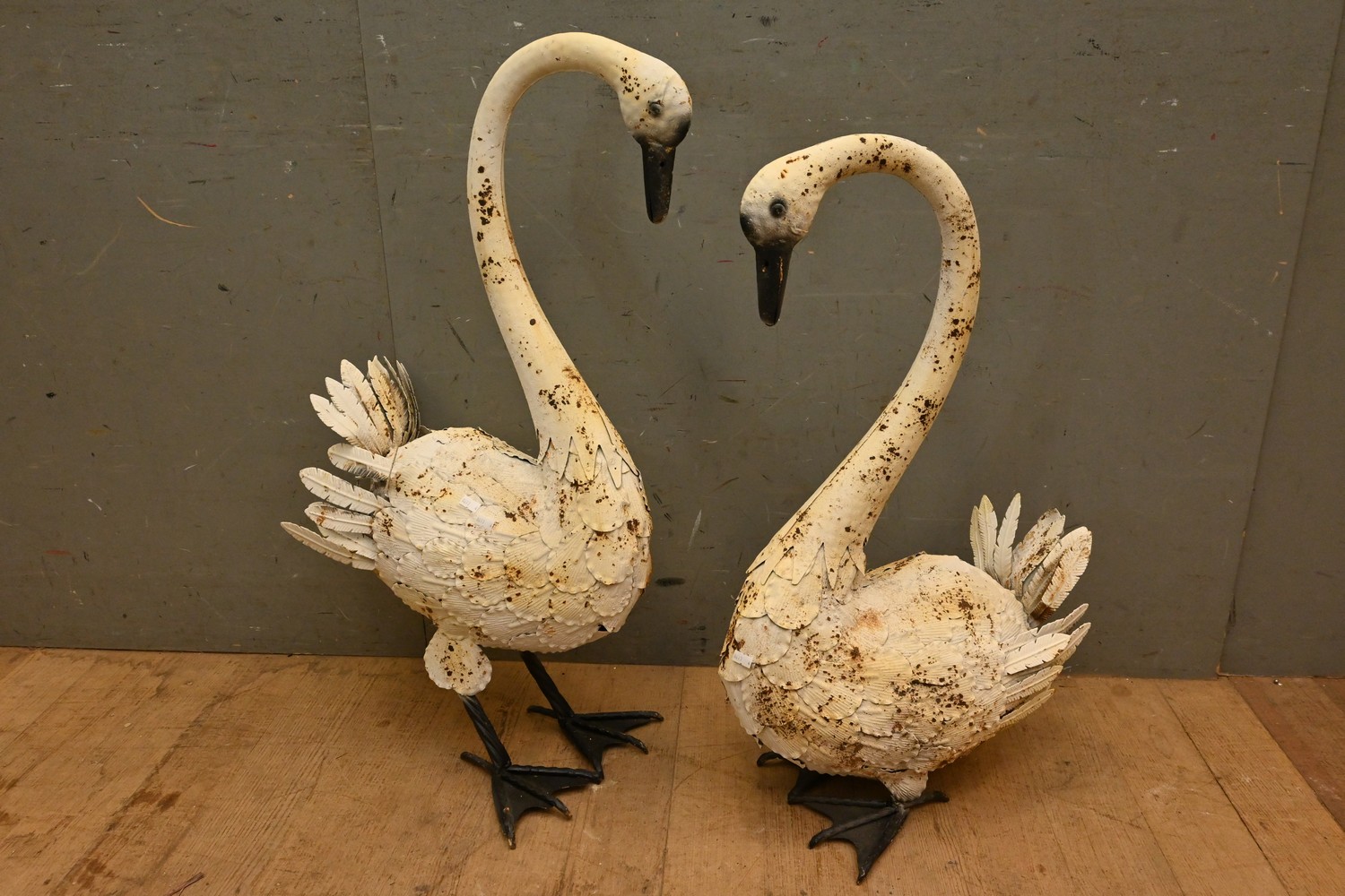 TWO DECORATIVE METAL SWAN FIGURES ( 84H X 44W X 25D CM) (LEONARD JOEL DELIVERY SIZE: LARGE)