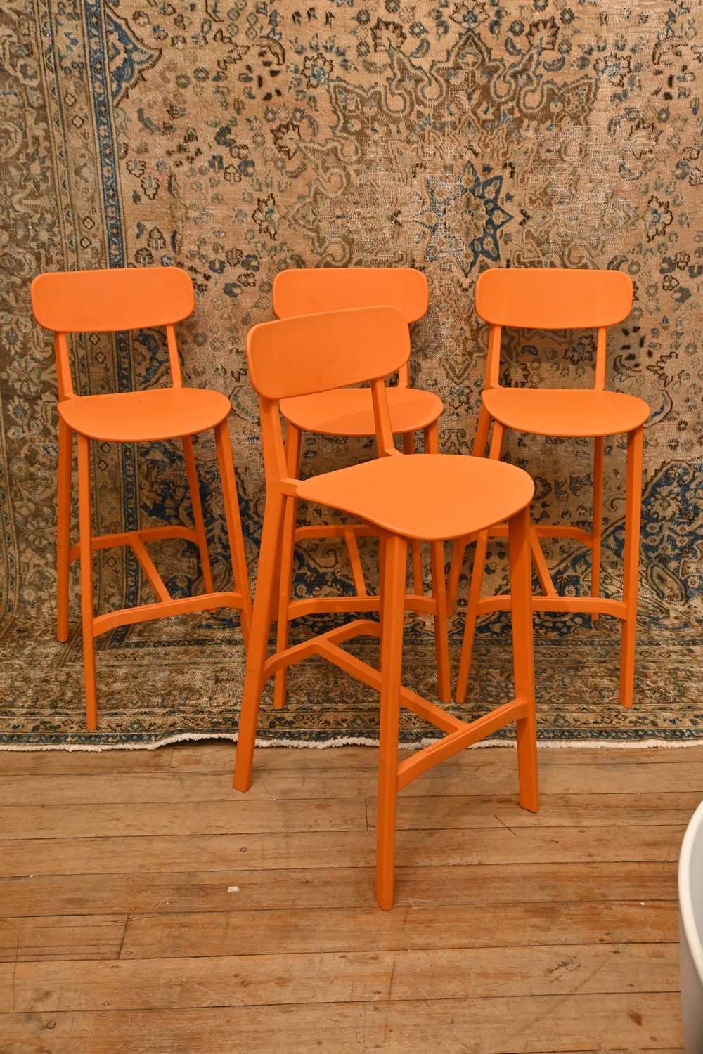 A SET OF FOUR PLASTIC MOULDED CHAIRS ( 105H X 40W X 53D CM) (LEONARD JOEL DELIVERY SIZE: X-LARGE)