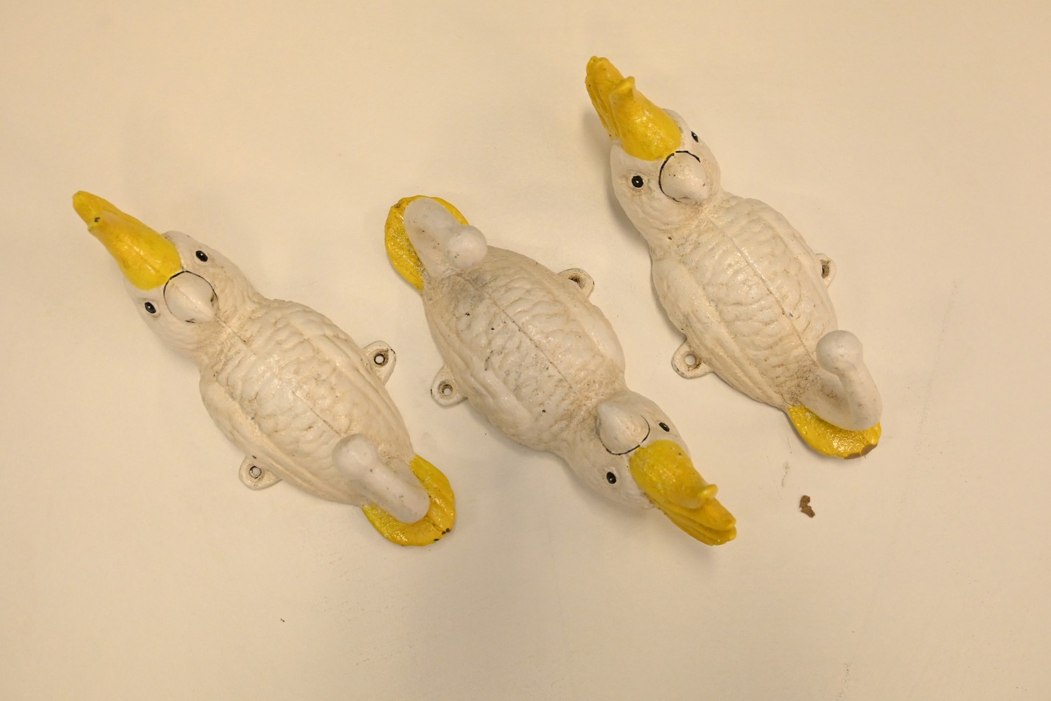 A SET OF THREE COCKATOO COAT HOOKS (19H CM) (LEONARD JOEL DELIVERY SIZE: SMALL)
